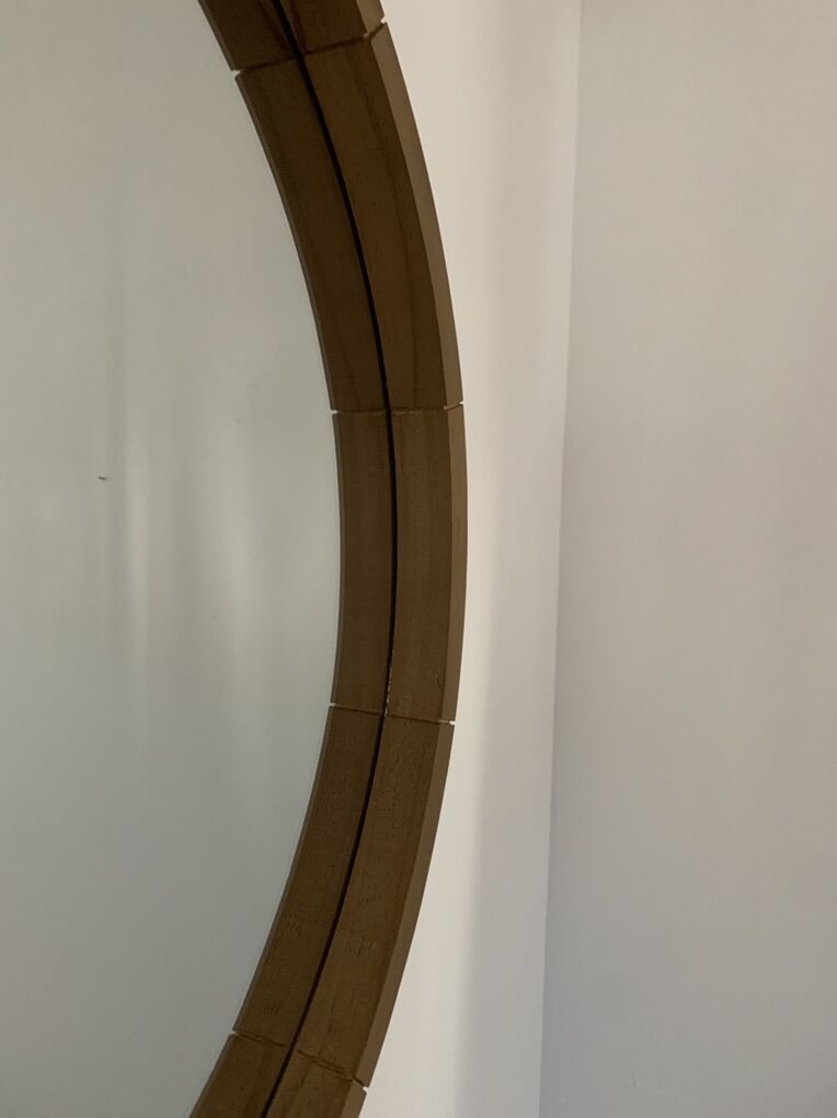 VenmoBeautiful round wall mirror with a warm wood frame. Clean, simple design that works great in an entryway, bedroom, bathroom, or above a console table.