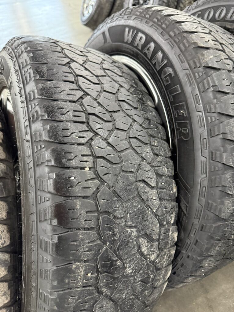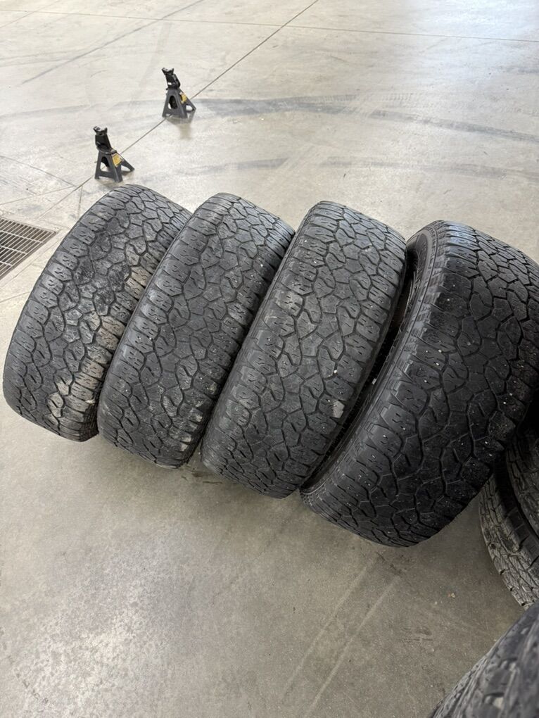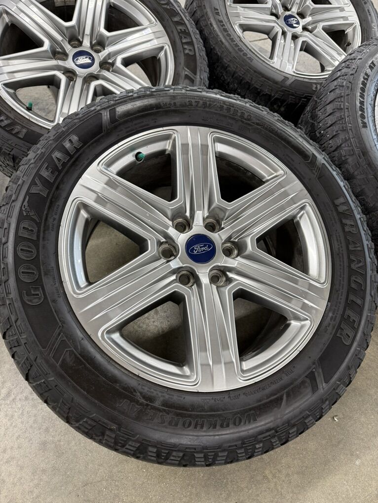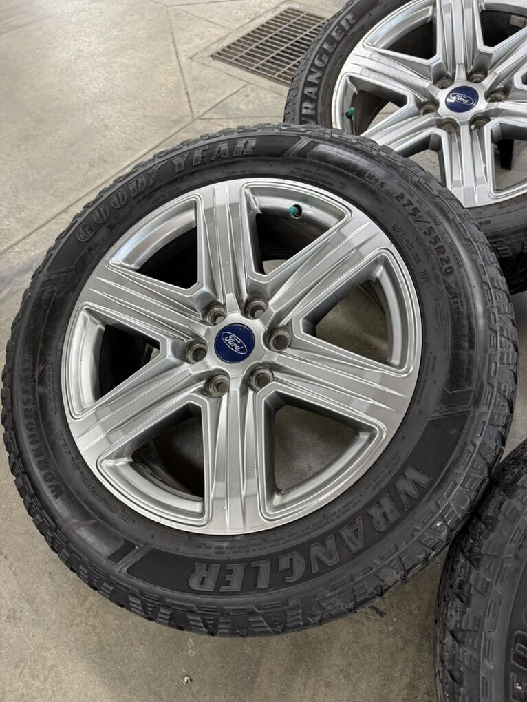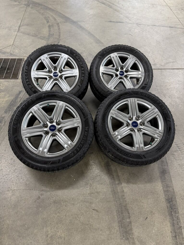 Came off a 2020 ford f150, wheels are in great shape, no curb rash, or major damage on them. Some light average wear, overall they are in great shape. All of the center caps as well as TPMS, included. Tires are 275/55/20 Goodyear wrangler all terrain, top of the line tires. No patches or plugs, tires have a decent bit of tread left.