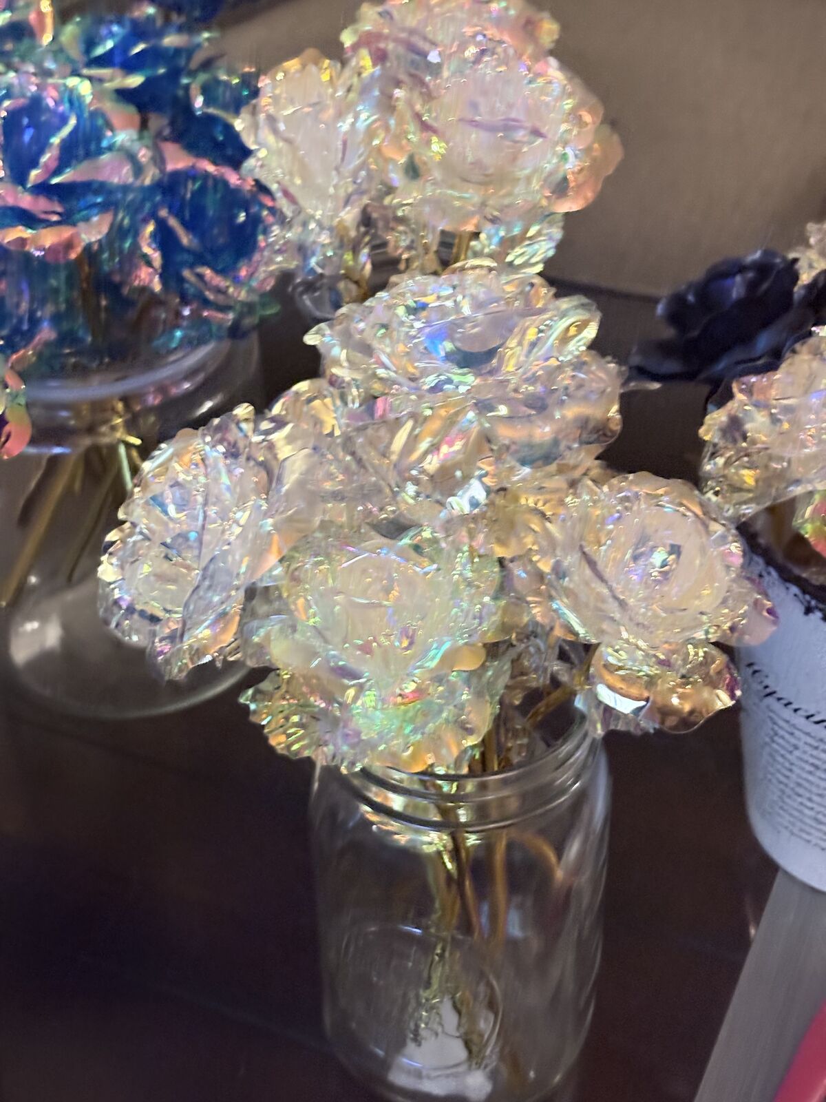 PayPalBeautiful roses. Holographic light reflecting Single $3 buy more then 3 price is $2.50 each i make arrangements also Very pretty and many colors available. Each rose is $3.,2.50 each when you buy more than 3