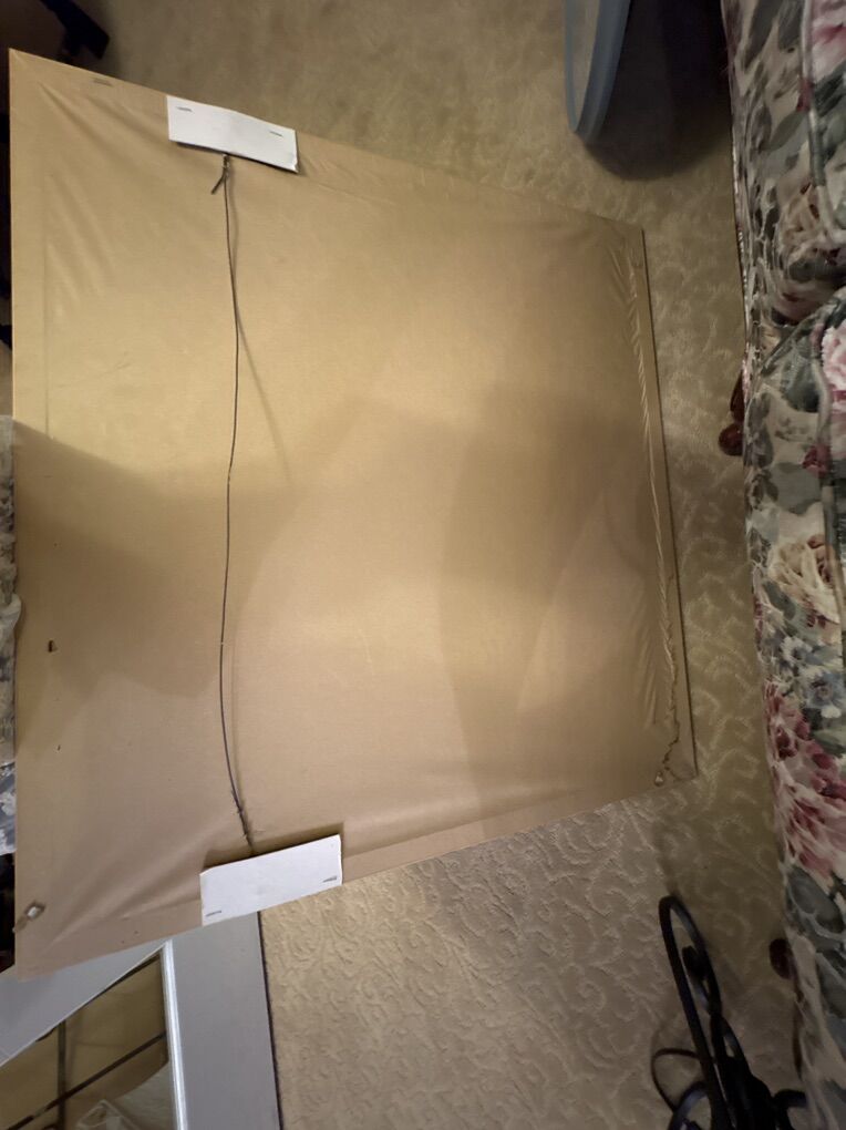 VenmoStrawberry blonde girl looking for kitten. Beautiful Irish flowers as tell as her. Pink and Blue hues. Cream frame. Perfect condition. Wire hanging. 30” x 32”