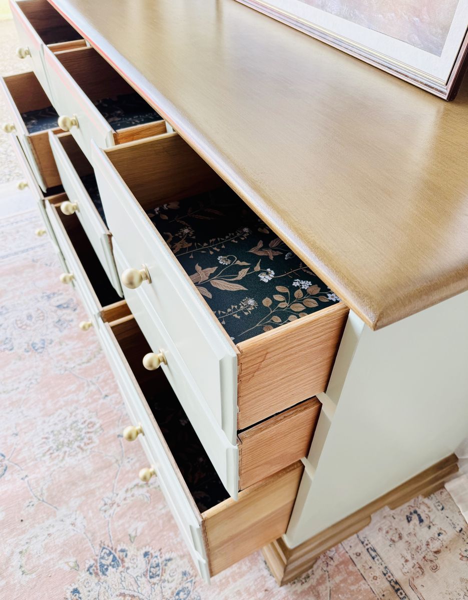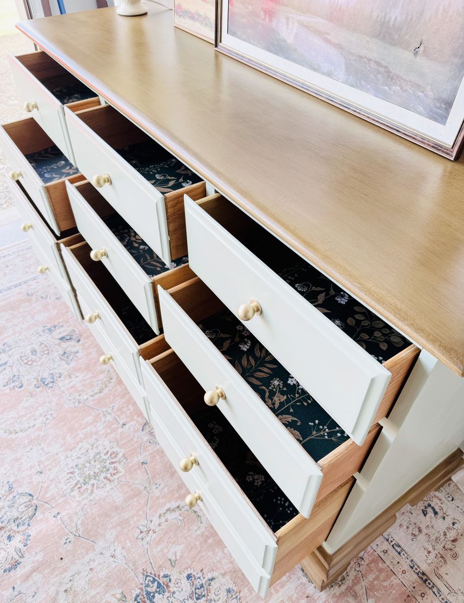 VenmoThis stunning, solid wood dresser is exceptionally sturdy and heavy, with smoothly operating drawers on wood tracks. Dovetailed drawers.