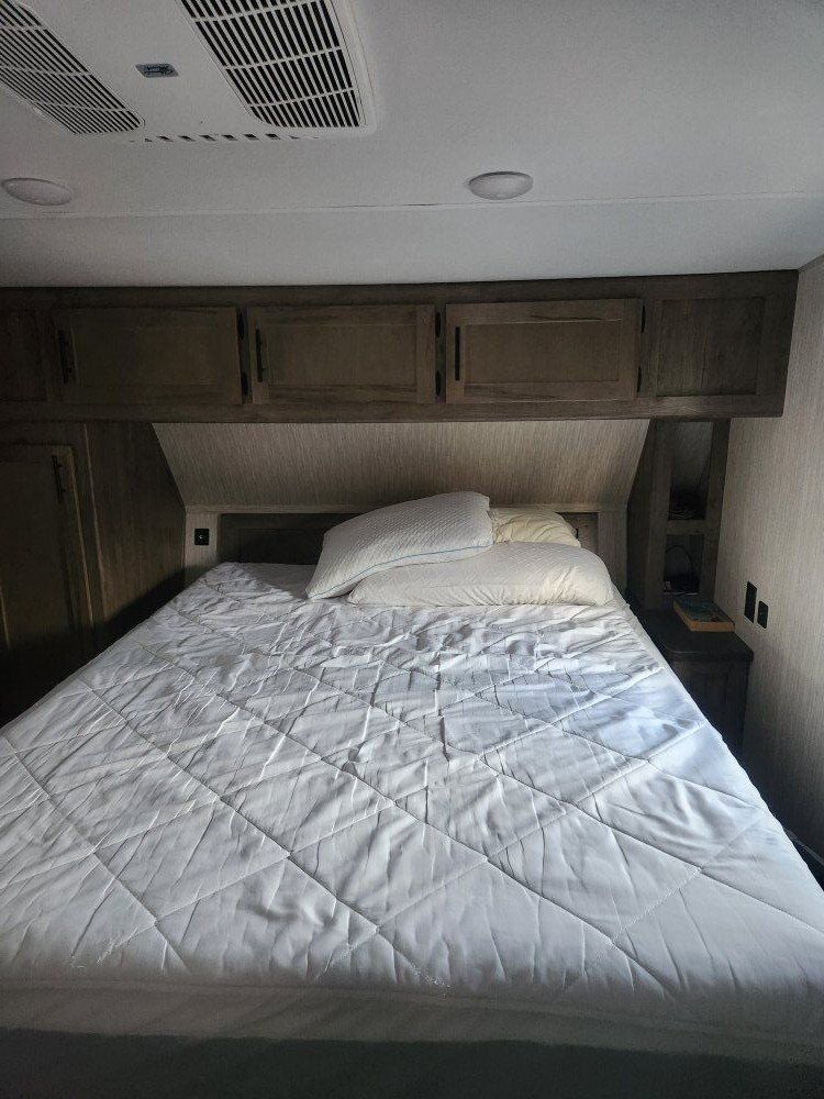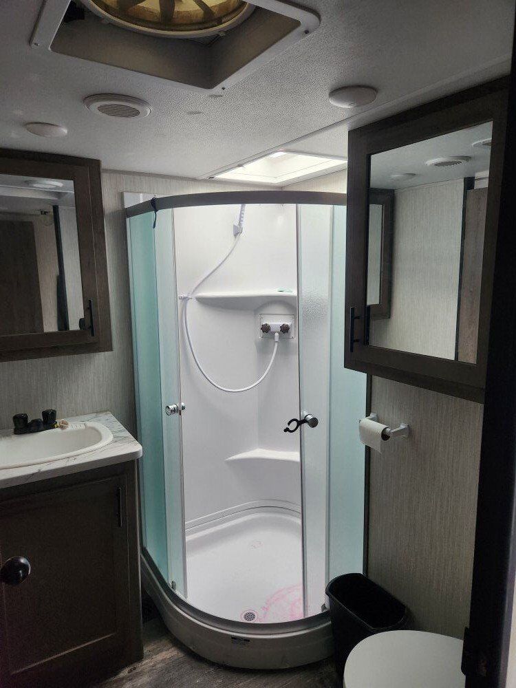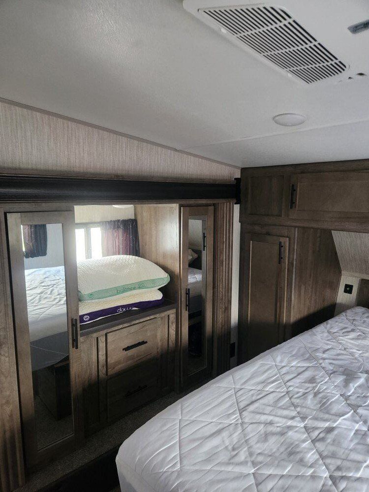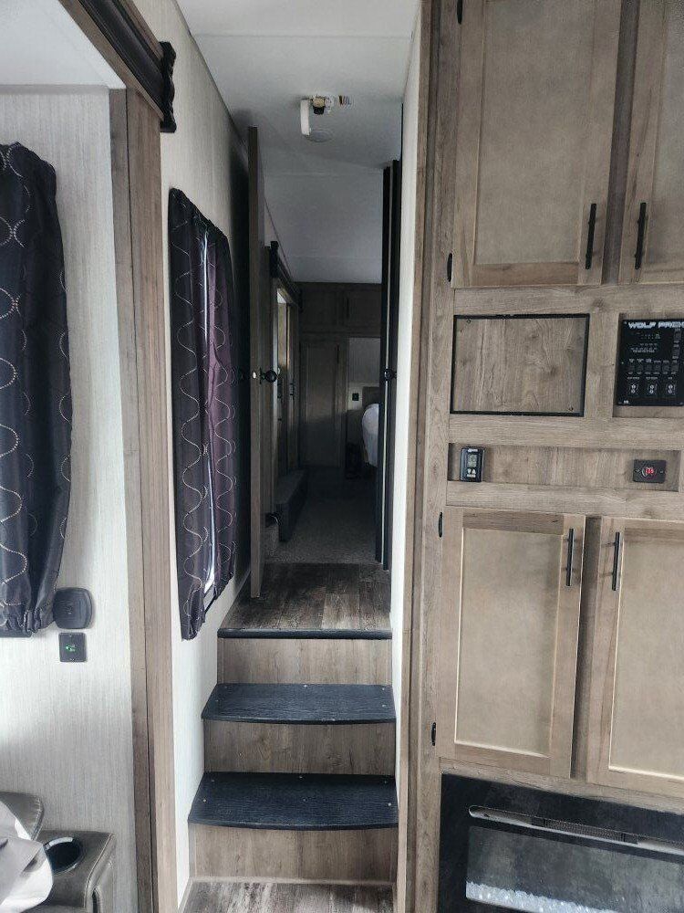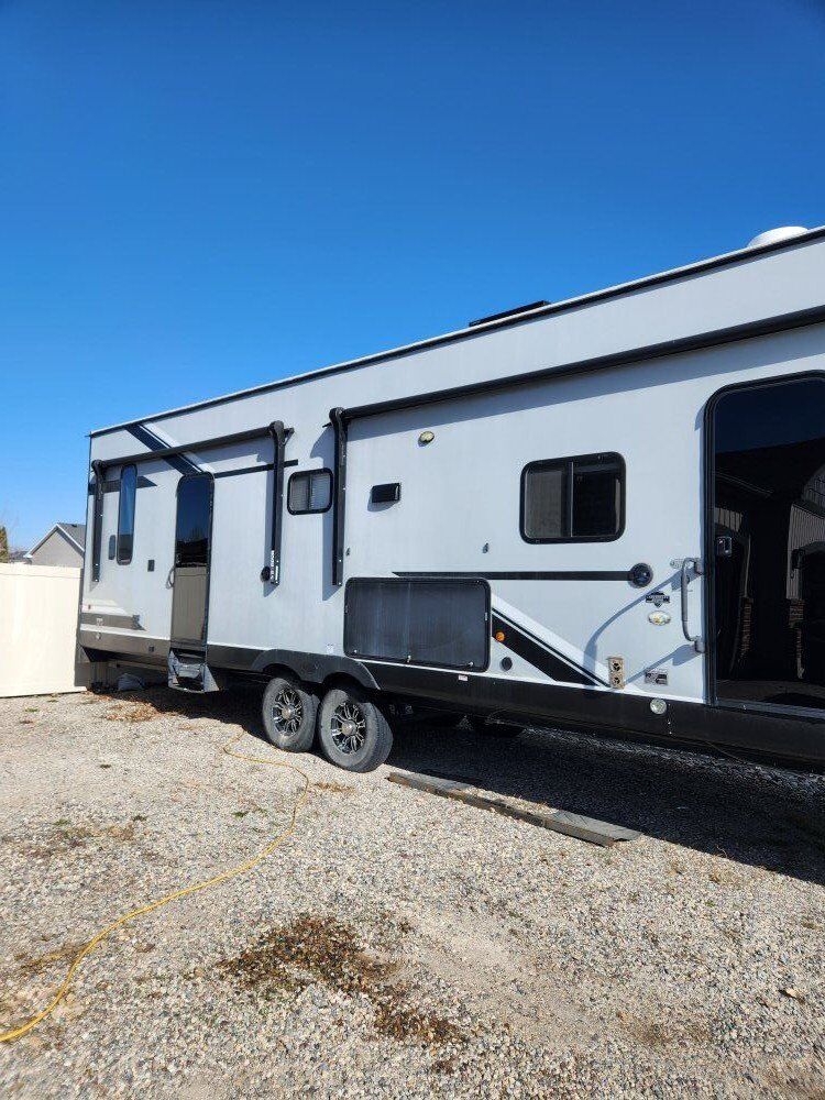 2020 Wolf Pack 365 pack 16. This 42' toy hauler has a separate 16ft garage cargo space with two queen happy Jack beds and a separate half bath in the back with folding away walls. Holds a 4 seat side by side. The ramp makes into a patio with railing. Camper has lots of outdoor storage, built in generator, fuel station, two awnings, outdoor stereo, outdoor shower. Inside the primary bedroom has a queen bed, huge pantry storage, lots of kitchen cabinets, fridge and freezer, fireplace It sleeps 7 (or 8 on the couch) and 1.5 bathroom. $60000