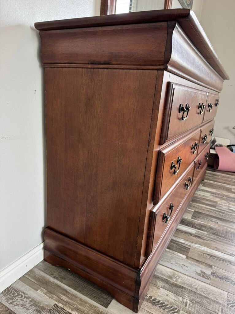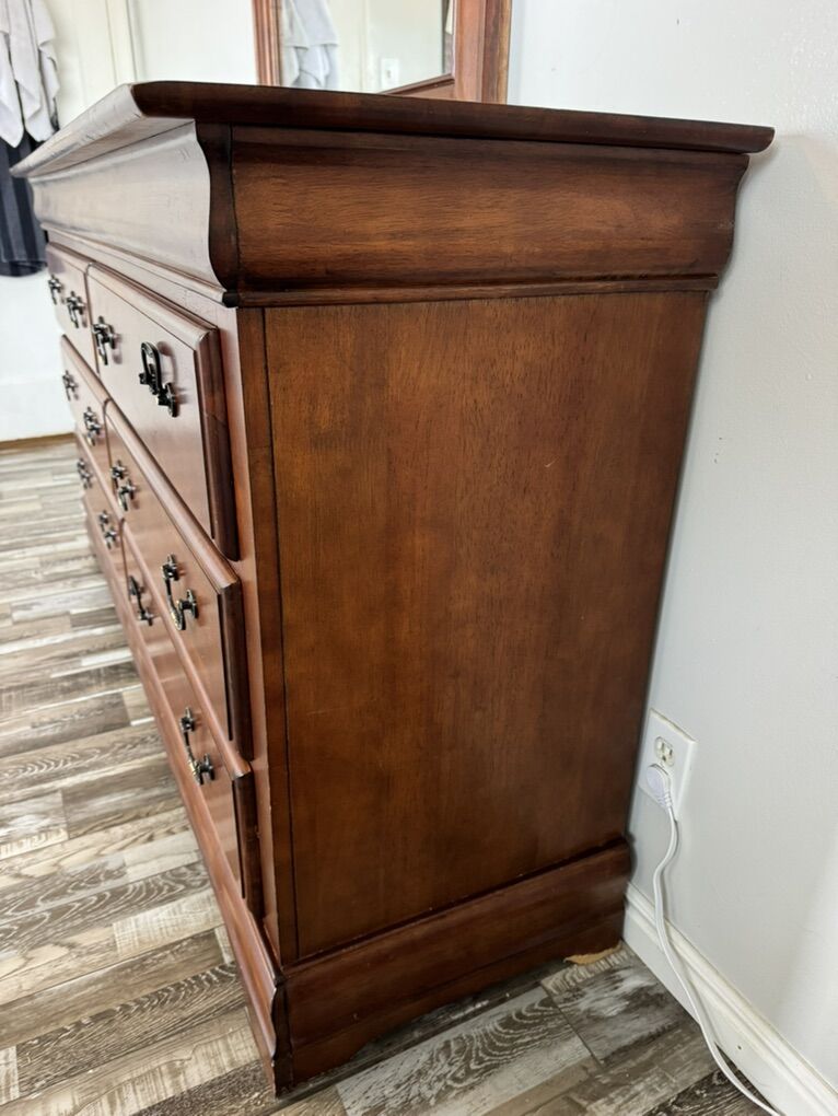 Large dresser: 68” long, 20” wide, 37” tall, 77” tall with mirror.