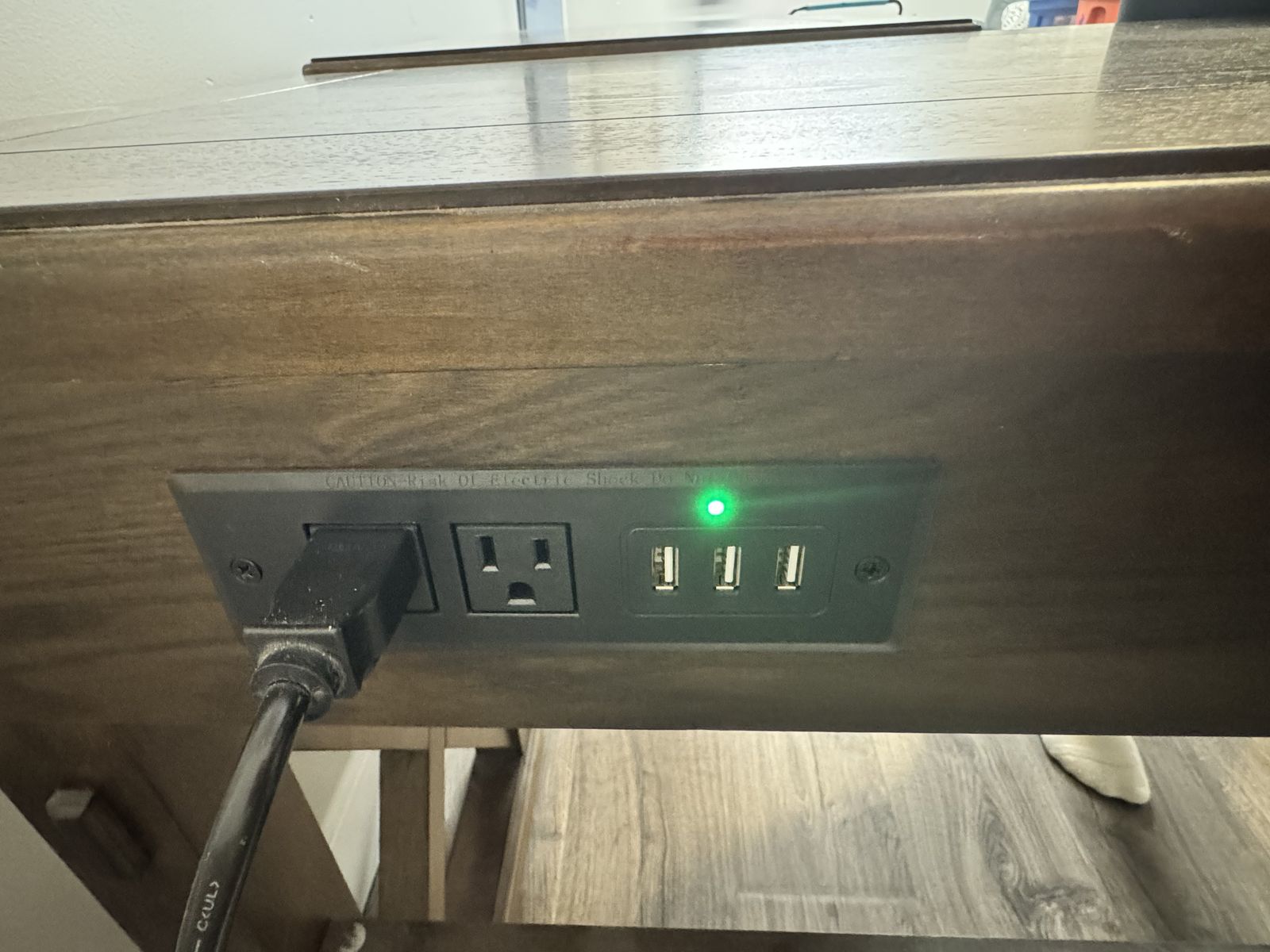 Integrated Power Hub: 2 AC wall plugs + 3 USB ports built right into the desktop for easy charging.