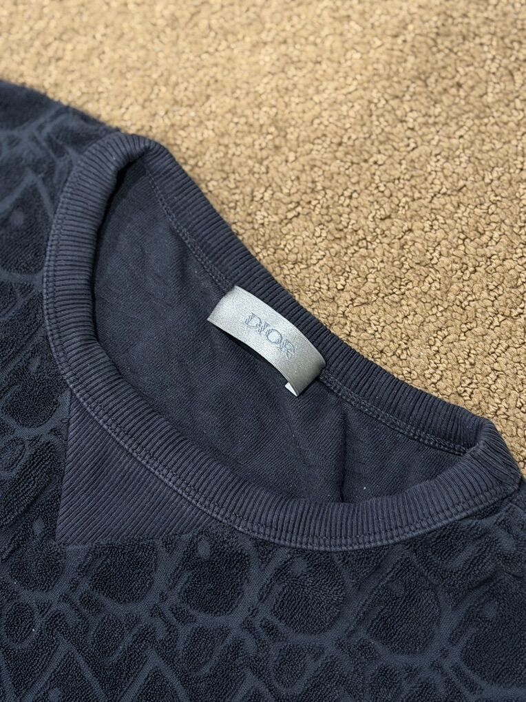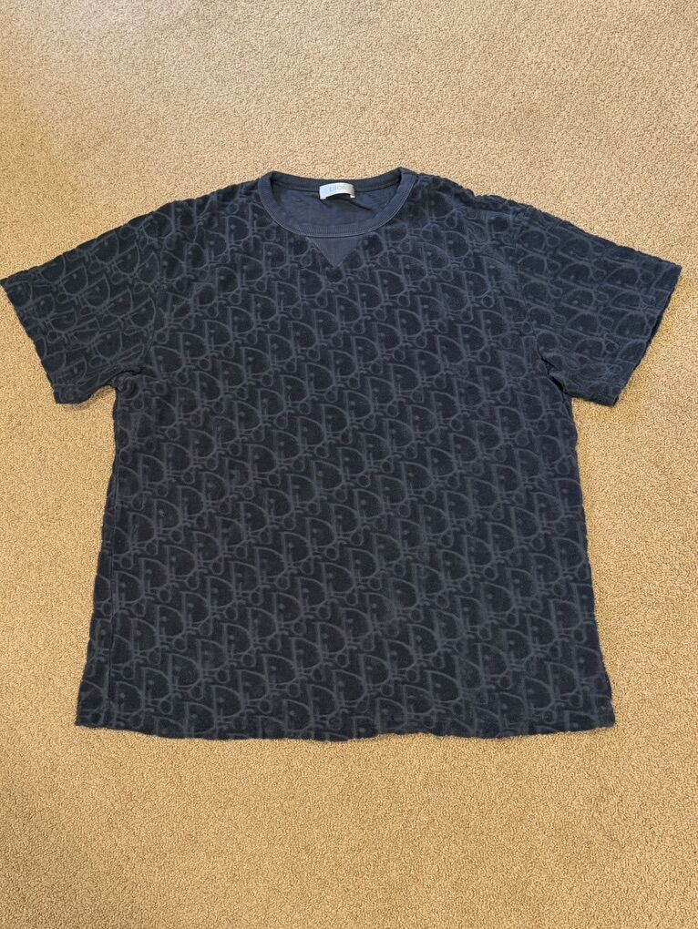 Dior Homme Black Monogram Terry Cloth Jacquard Oblique T-Shirt - Size XL (fits like a Men’s M/L)