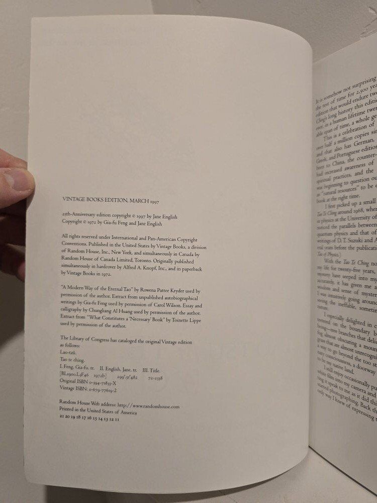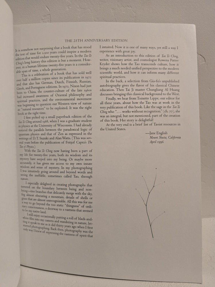 The Tao Te Ching, 25th-Anniversary Edition paperback is a beautifully crafted English translation of the Chinese classic by Lao Tzú. TRANSLATED BY GIA-FU FENG AND JANE ENGLISH. This edition, published by Vintage Books in 1997, is highly regarded for its accuracy in capturing the essence of each word and making Lao Tzú's teachings immediately accessible to the reader. With a focus on Taoism, Eastern philosophy, and personal virtue, this book is a timeless piece that resonates with readers worldwide. Illustrated and with a weight of 20 ounces, this 184-page trade paperback is a must-have for those interested in religion and philosophy. Pick up only..