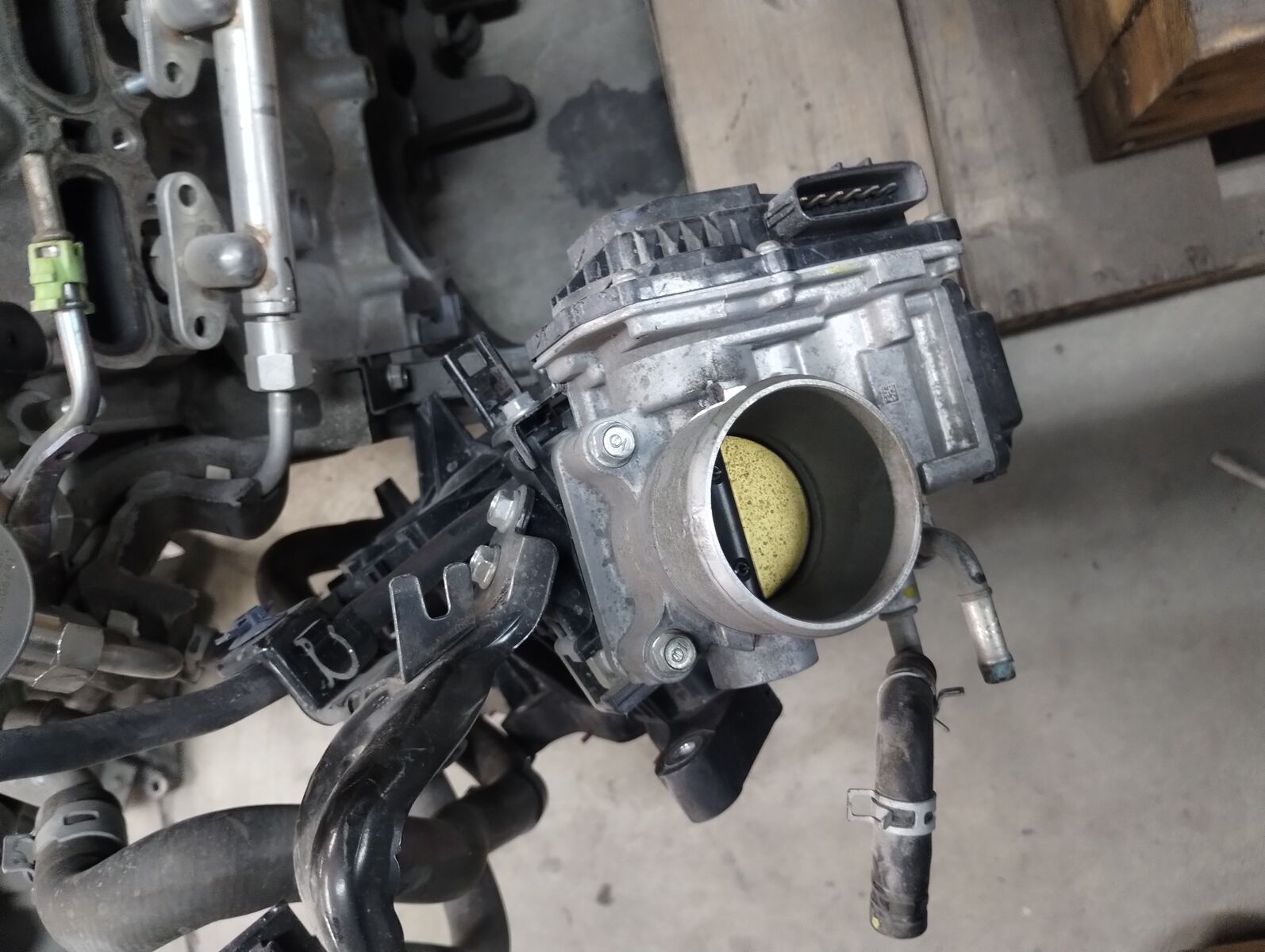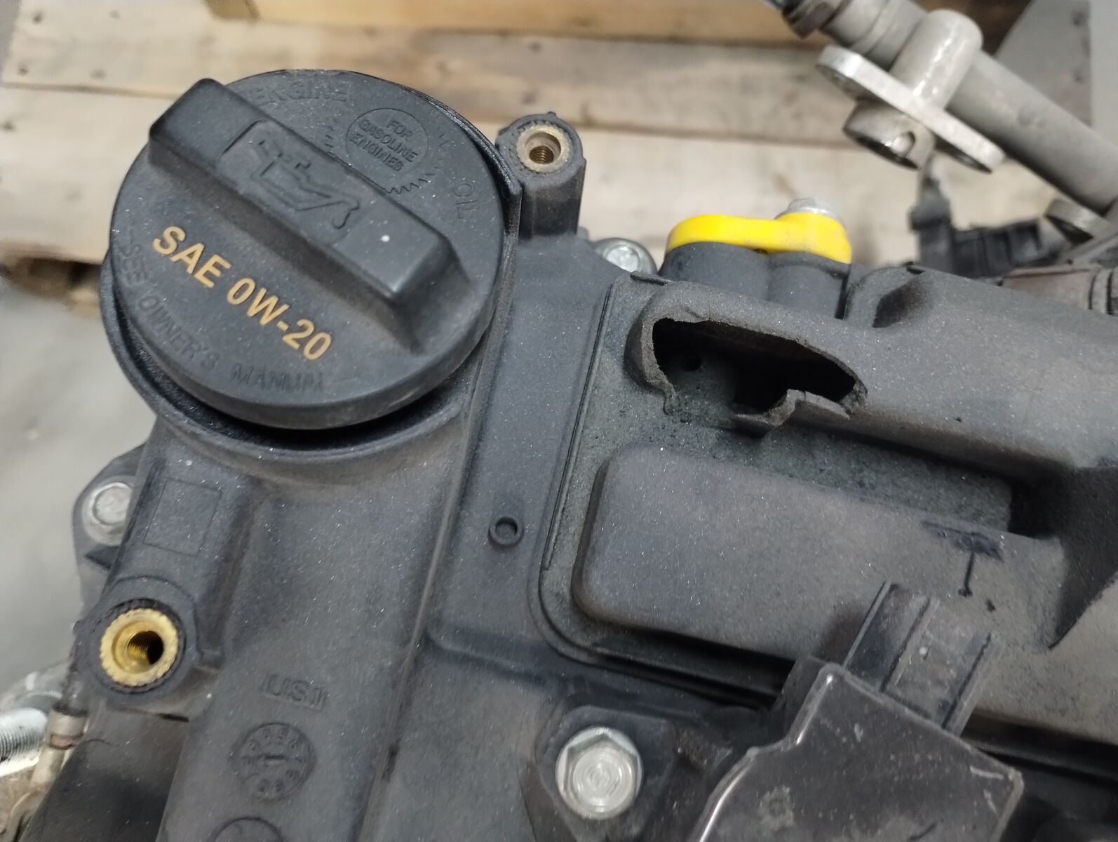 The engine still ran perfectly fine and is complete with plugs, coils, intake, hoses, sensors, wiring harness, throttle body, etc. Everything pictured is included. It does need a new valve cover.