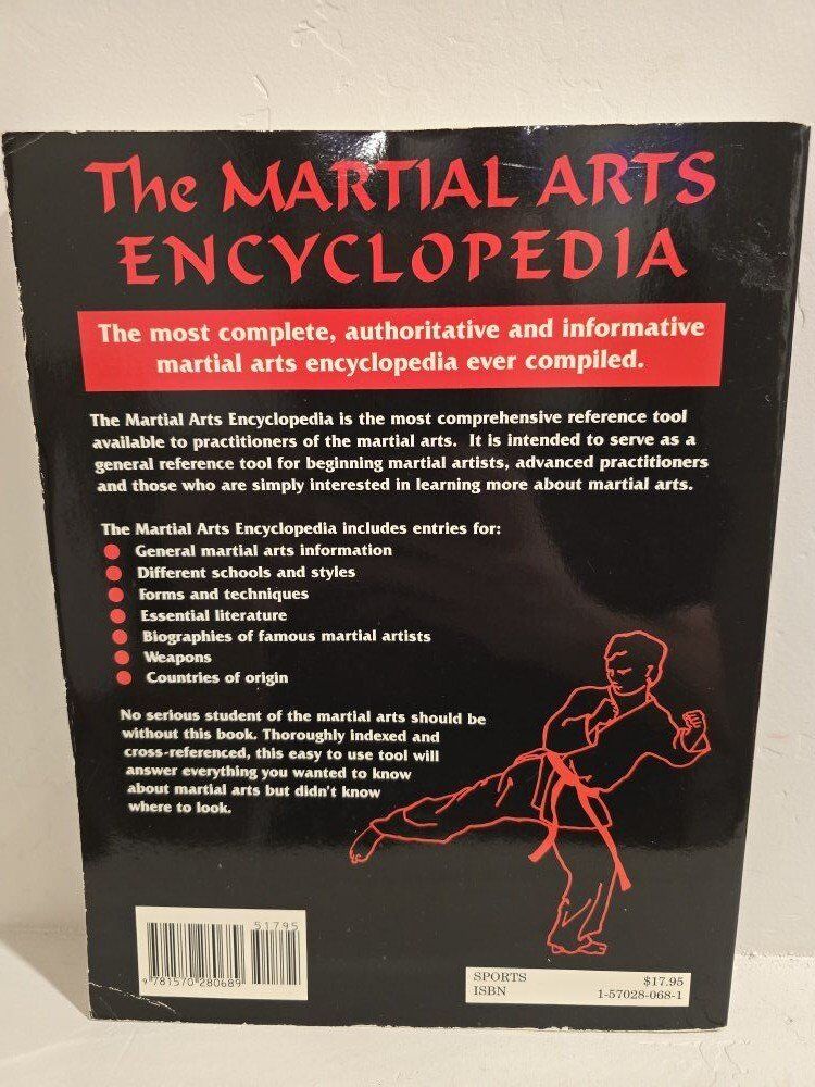 VenmoThe Martial Arts Encyclopedia by Jennifer Lawler is a comprehensive reference guide covering every aspect of martial arts, including styles, history, theory, and techniques. With photos and illustrations, this trade paperback book is perfect for beginners and advanced practitioners interested in learning more about martial arts. Published in 1996 by McGraw-Hill Trade, this 328-page encyclopedia is a valuable resource for anyone interested in sports and recreation, specifically martial arts and self-defense. Please see pictures fornmore details. Pick up only.