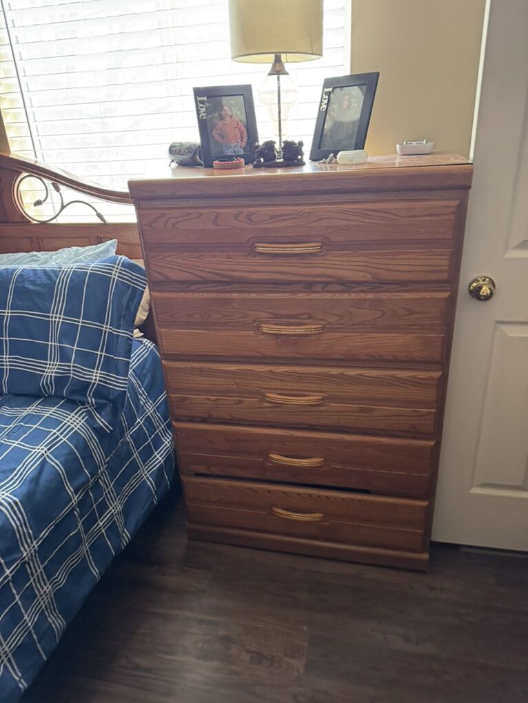CashAppUsed bed comes with box spring and mattress head board and frame the dress is a five drawer.