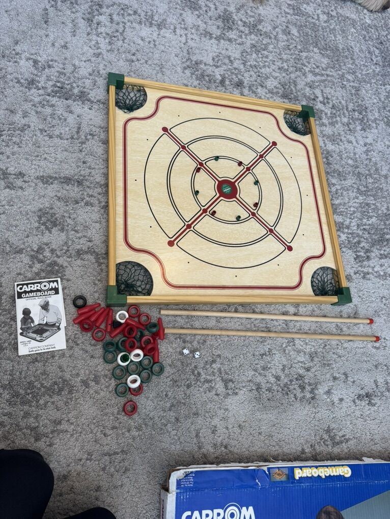 ApplePayVintage Carrom Gameboard Model 108 by the Carrom Company (Ludington, MI). Classic multi-game wooden board from the late 80s/early 90s.