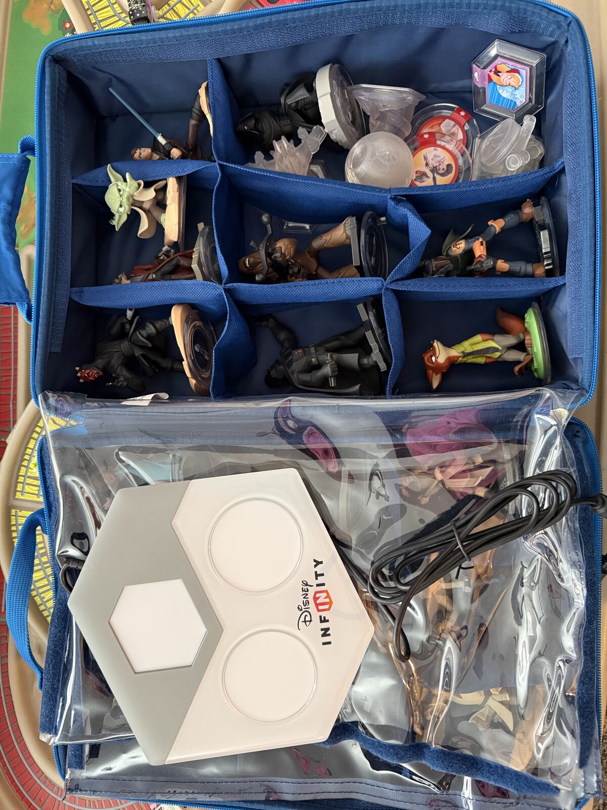 ApplePayThis bundle includes the base, large case with two sides and handle, and many many characters. It does not include the disc to play the game. But if you have the game and are wanting more characters this set would be fun. A lot of Star Wars, a few princesses, etc.