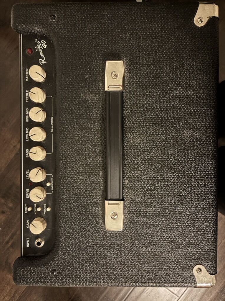 VenmoFender Rumble 40 bass combo amp (40 watts, 1x10 speaker). Very clean and works perfectly. Great for practice, rehearsals, or small gigs. Has Overdrive channel, AUX in & headphone out