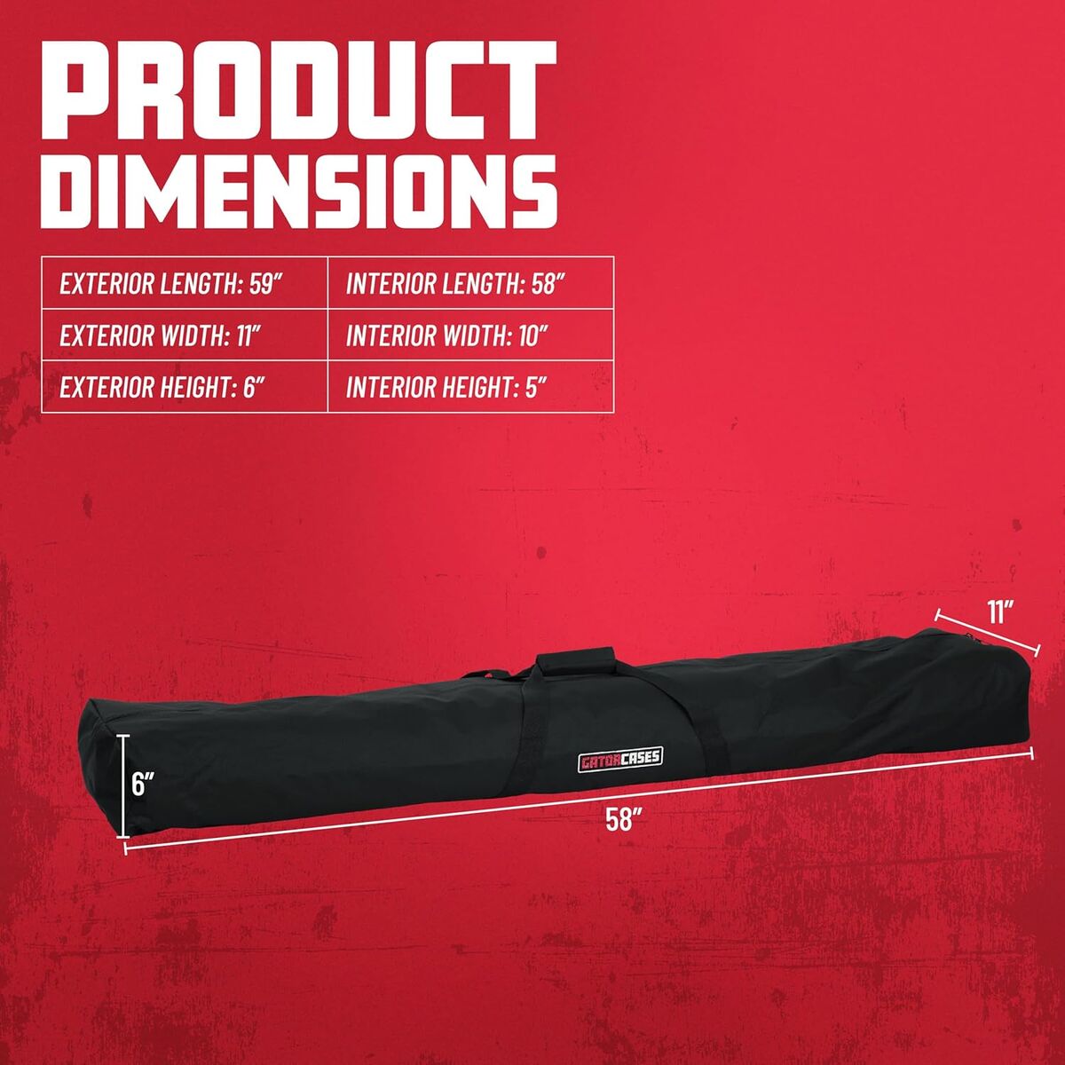 Gator Cases speaker subwoofer pole carry bag is made of a rugged nylon material and features (2) separate zippered compartments. The 58” interior length will fit most standard size speaker subwoofer poles. The dual compartment design stores and safely separates each sub pole during transport. The lightweight bag is water and tear resistant and includes and reinforced nylon carry handle. Fits the Gator Frameworks ID series sub pole, the Frameworks standard series sub pole or any sub pole/stand under 58” length.