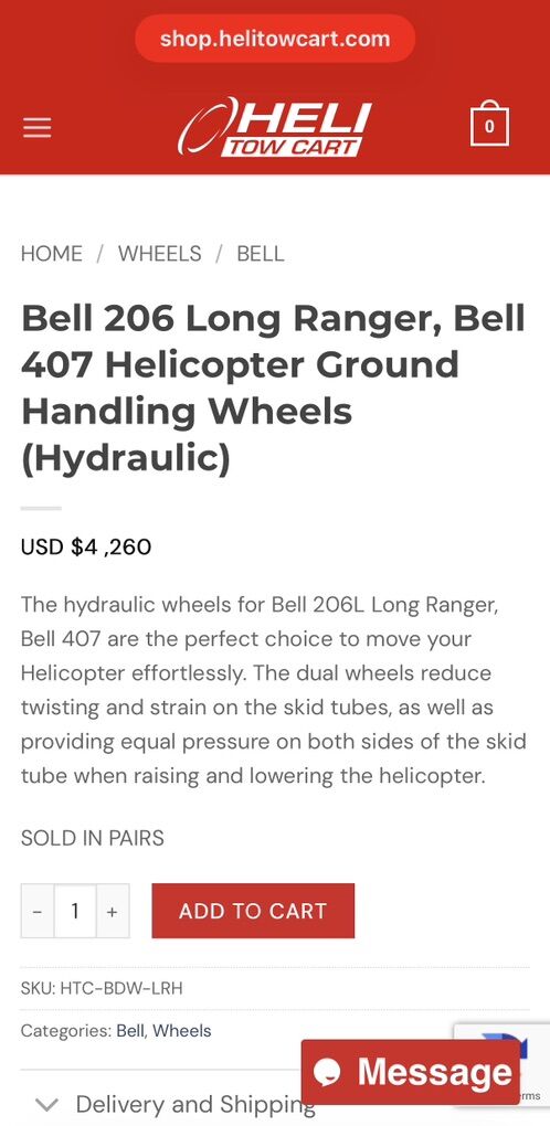 VenmoOnly used1 time Heli Tow hydraulic groundhandling wheels. They fit a Bell 206 L and Bell 407. They are awesome and easy to use text is best 80one828647one.
