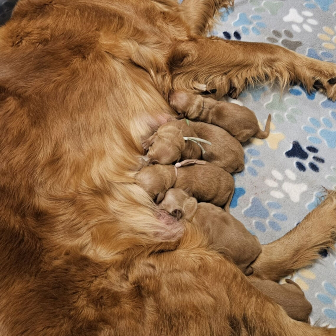 VenmoThis is our handsome AKC PROVEN STUD, Angus! He is 4 years old. The price is $850 for the stud fee for 3 ties. He has gorgeous puppies with the best personalities; Biggest litter he has proven is 12 puppies. He is AKC DNA CERTIFIED and TESTED. He is EMBARK tested and cleared. He is OFA CERTIFIED and TESTED. He has a beautiful dark red coat and a very athletic build. He weighs 82lbs but looks on the smaller, stockier side. He is up to date on all shots. We get compliments on him everywhere we go. He is a very loving, loyal, and the sweetest boy ever. He is a big cuddle bug. He gets along with every dog, all animals, children, and adults he has come in contact with. He is In training of hunting for sheds/horns and service dog training. just like his mother. He has Very high retrieve drive but also super calm and sweet boy. He wouldn’t ever hurt a fly. He is such a people pleaser, Great family dog, and guard dog if need be. He loves to play hide and go seek and fetch. Angus is VERY smart and obedient! I’ve personally trained Angus commands such as, SEARCH, LEAVE IT, SIT, STAY, COME, WAIT, GET READ…SET…GO! SEARCH BOYS(my children), MOM(me), DAD(my husband), NELLY(Angus’s mother), HORN, BALL, ROPE, TOY, and BIRD. He also knows OFF, OUT, UP, LAY DOWN, CRAWL, ROLL OVER, HUGS, NO FACE, PAW, TASTE, SOFT and HAND and FEET SIGNALS. His mother (Nelly) who I also own is AKC, OFA CERTIFIED, cleared on DNA testing through EMBARK. She is a small dark golden retriever, Weighing 47 lbs. She has also been trained to hunt for sheds. She is a service dog. Knows all commands that Angus knows and more. Has all vaccinations done. His dad (Joey) is a stud here in Saint George utah. He is AKC registered and Cleared on health testing through EMBARK and OFA CERTIFIED. He weighs about 70 pounds. Has all vaccinations done. Pictures include STUD, his twin offspring, two of his adult sibling brothers, His litter’s of puppies & the females, and mother & father of stud. We will allow for a female to come to our home for up to three ties during heat cycle or I can travel and meet you half way or to where your located if needed for an extra fee. If pregnancy does not happen then you can have a free breed the following heat cycle of 3 ties. If you would like to get on the waiting list for when your female is planned to go into heat next, Feel free to txt me for more info and to coordinate. Please TEXT only at (435)680-2513 with any questions or interest in our sweet boy. Thanks!