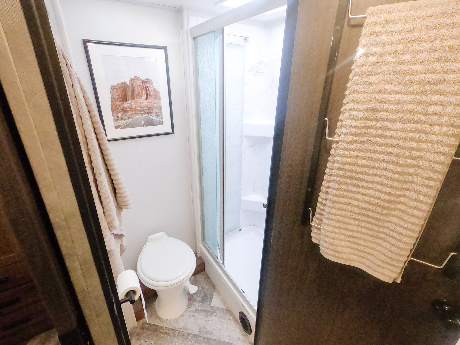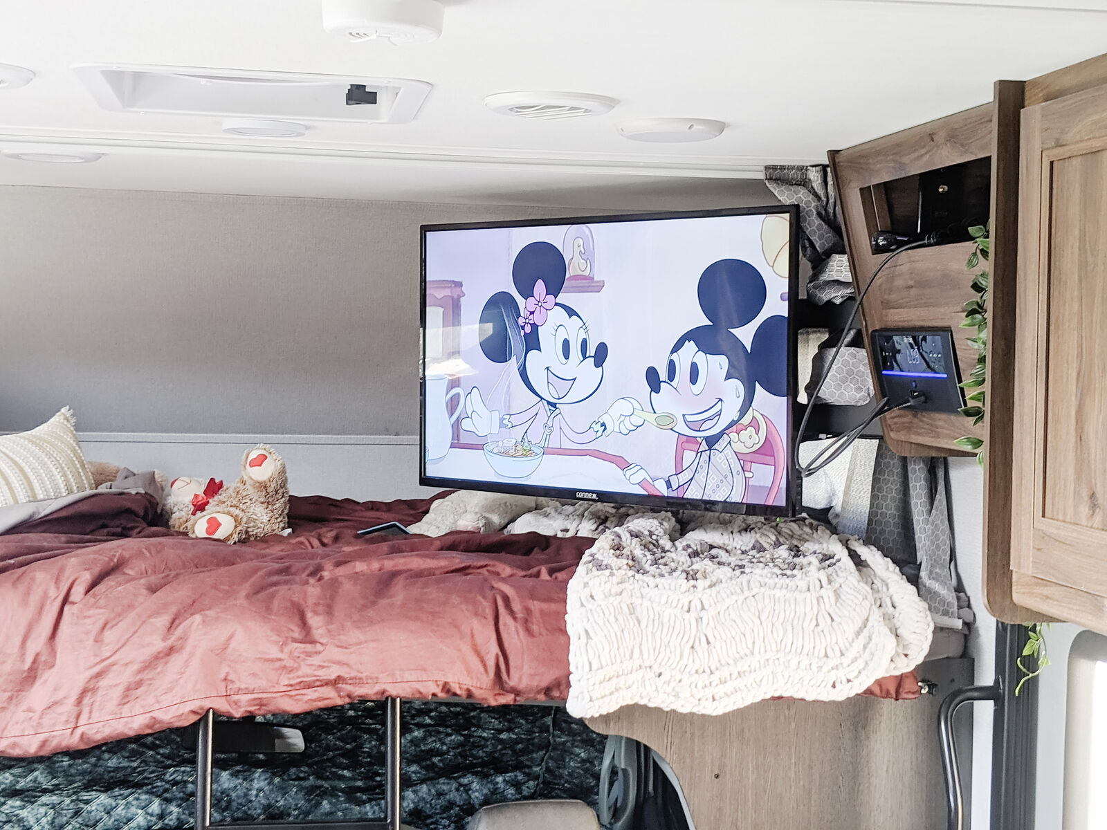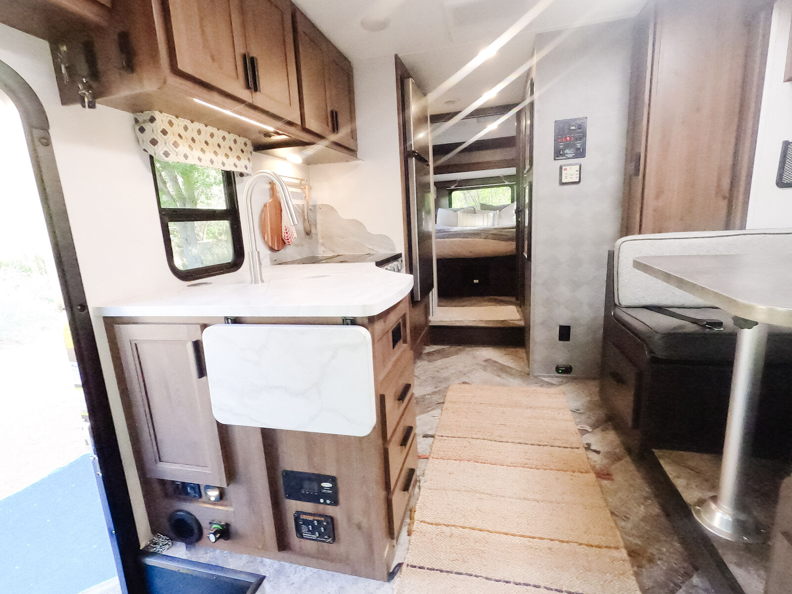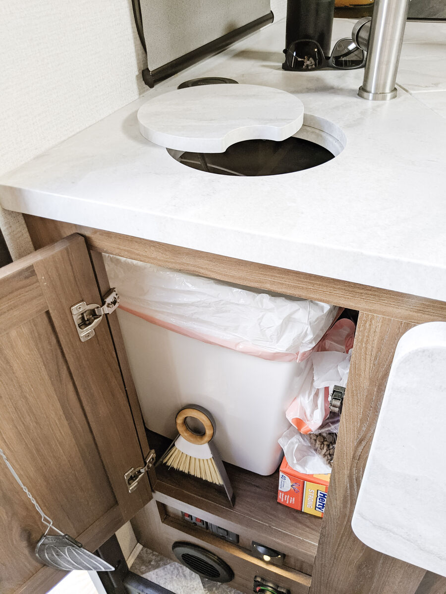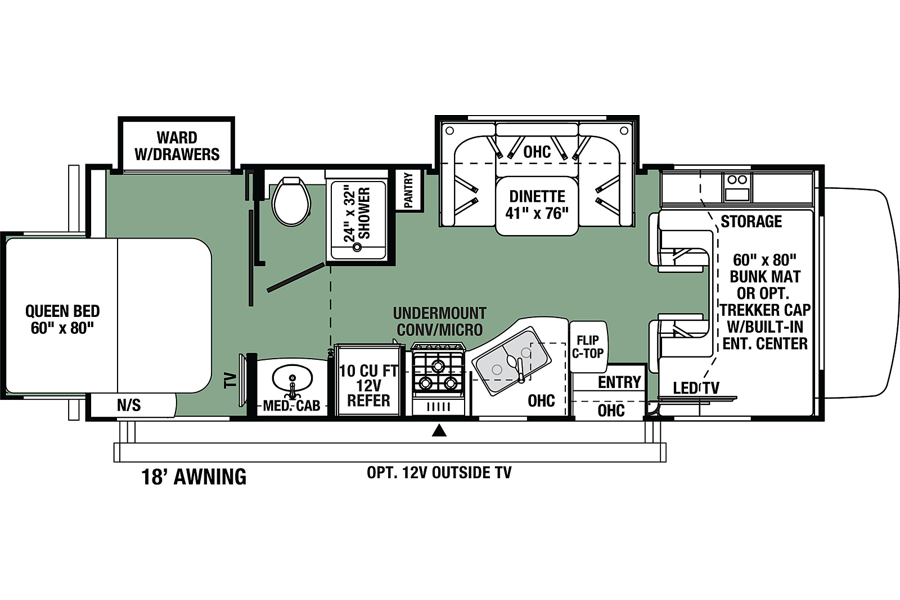 The kitchen has great counter space and storage, and everything is easy to access and use. There is plenty of interior storage throughout, plus exterior compartments for all your gear. The outdoor TV under the awning is a kid-favorite features for summer evenings.