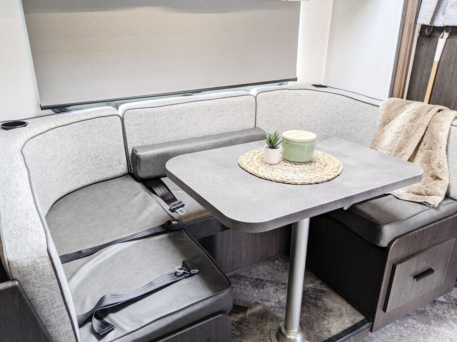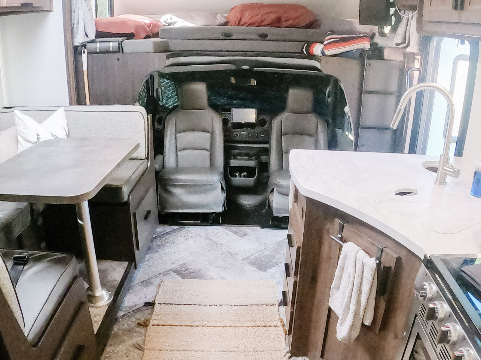 At only 27', this RV is easy to drive and compact enough to fit in any national park but expands with the 3 slides to feel super spacious. There is a private bedroom with a queen bed, over cab queen bed, and a U shaped dinette that converts to another full bed for extra sleeping space. It can comfortably sleep six people.