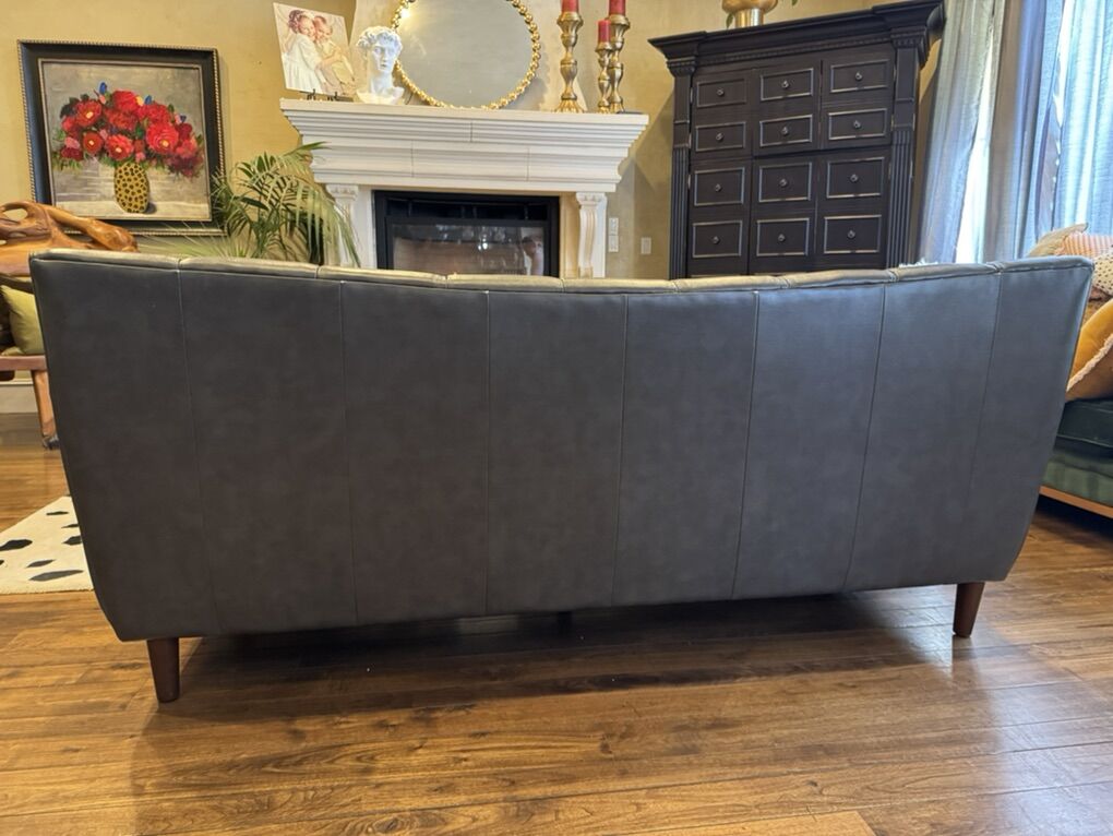 ApplePayGray leather couch for sale. Simply redesigning and no longer using.