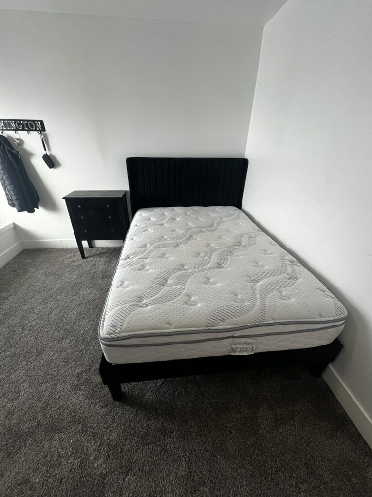 VenmoSelling a full size black velvet bedframe platform so it does not need a box spring and a black three drawer night stand ! Great shape ! Every drawer on the nightstand works and nothing is broken on the bed . Willing to deliver within the valley for extra. Mattress is not included