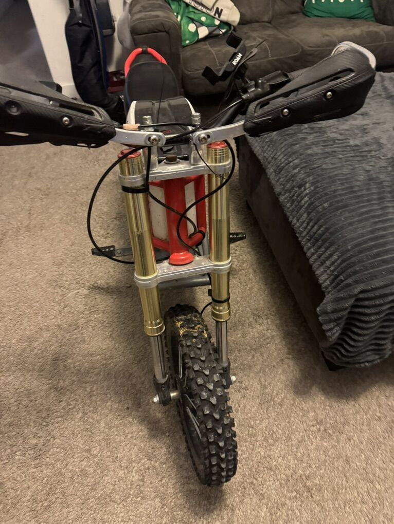 Selling our razor rsf 650. It has lots of upgrades done to it everything from motor speed controller and lithium 48v battery to front shocks from electric and co along with an upgraded rear shock under the seat. It also has hand guards and an upgraded twist throttle with battery voltage and a user key for security. I have all the plastics for the bike still my child thinks lighter is faster lol. Asking 600 or best offer