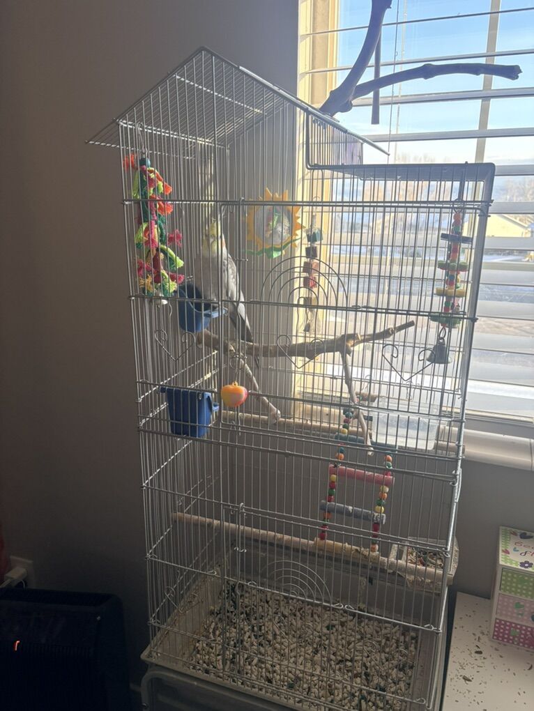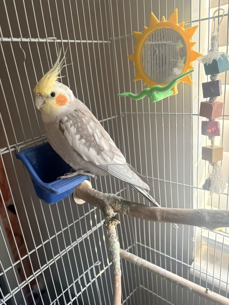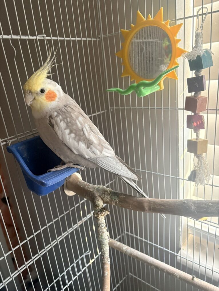 Beautiful cockatiel with cage some toys water and food trays and everything you need.