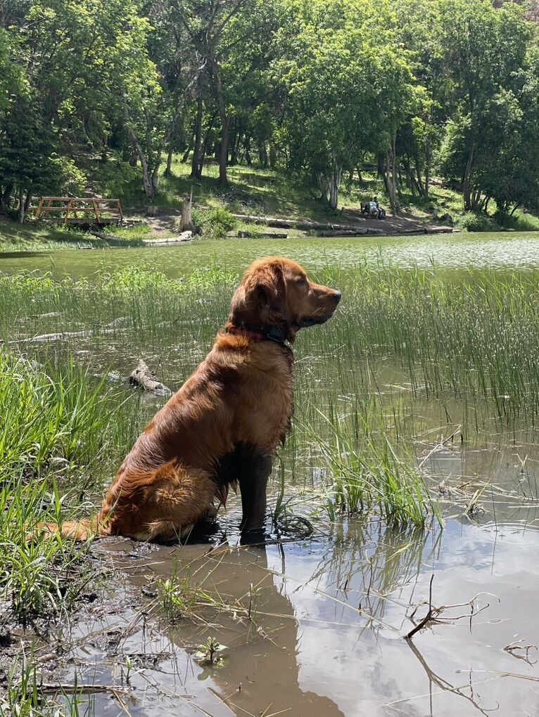 About Him: Our boy is a striking dark mahogany-red Golden with a rich, lustrous coat that turns heads everywhere he goes. Built with the athletic, lean physique of a true field Golden — he is agile, energetic, and built to work, yet equally at home curled up on the couch with the kids.