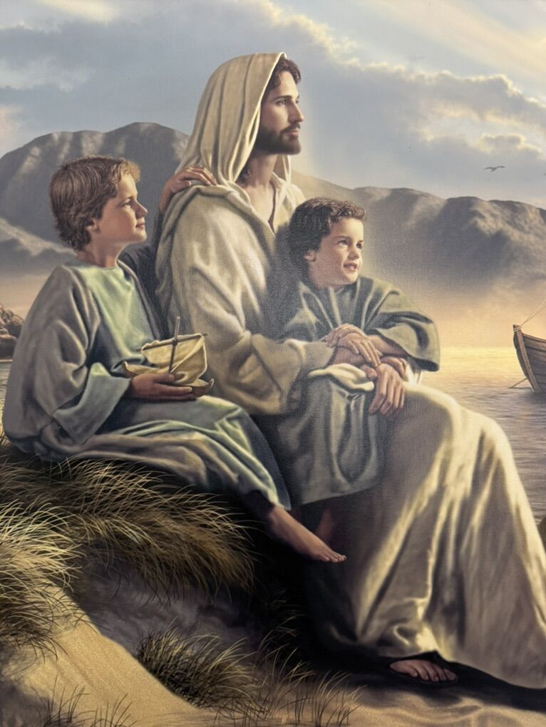 Retails for $500 https://altusfineart.com/products/simon-dewey-men-of-galilee-christ-with-boys?variant=33575485112456