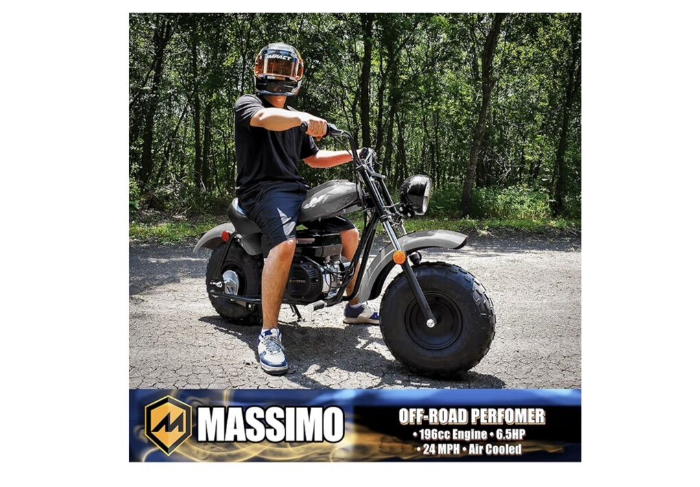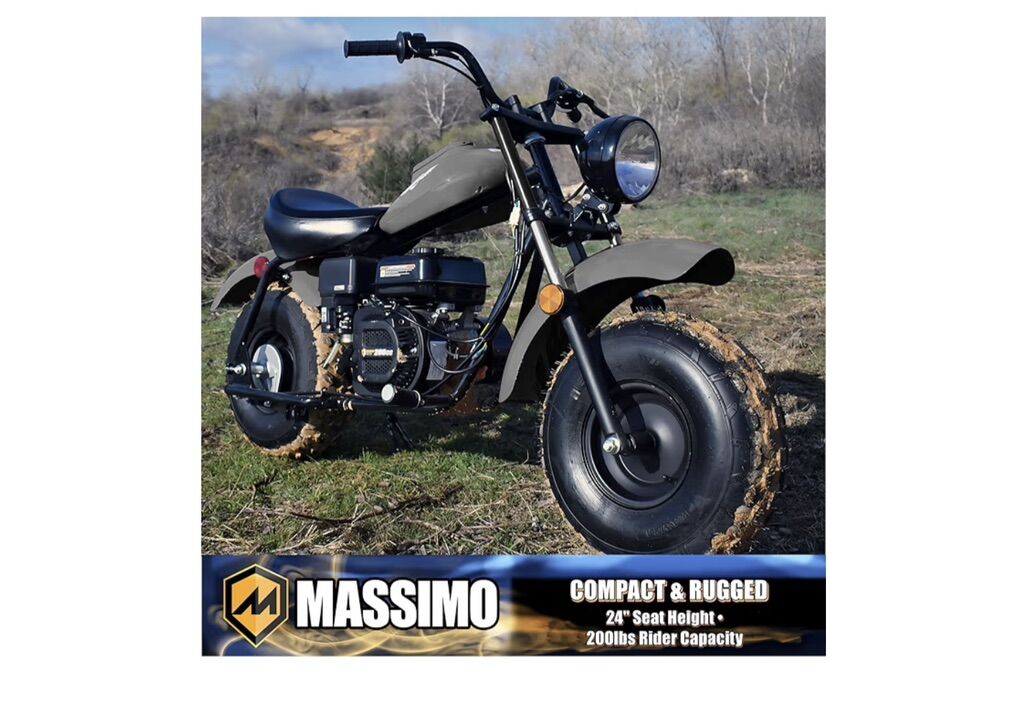The Massimo Warrior 200 (MB200) is a 196cc, 6.5 HP, air-cooled, 4-stroke mini bike designed for off-road trails, ranches, and recreational use. It features a rugged steel frame, 19-inch all-terrain tires, a 25 mph top speed, and a 200 lb weight capacity, making it suitable for both teenagers and adults.