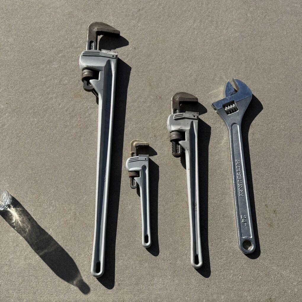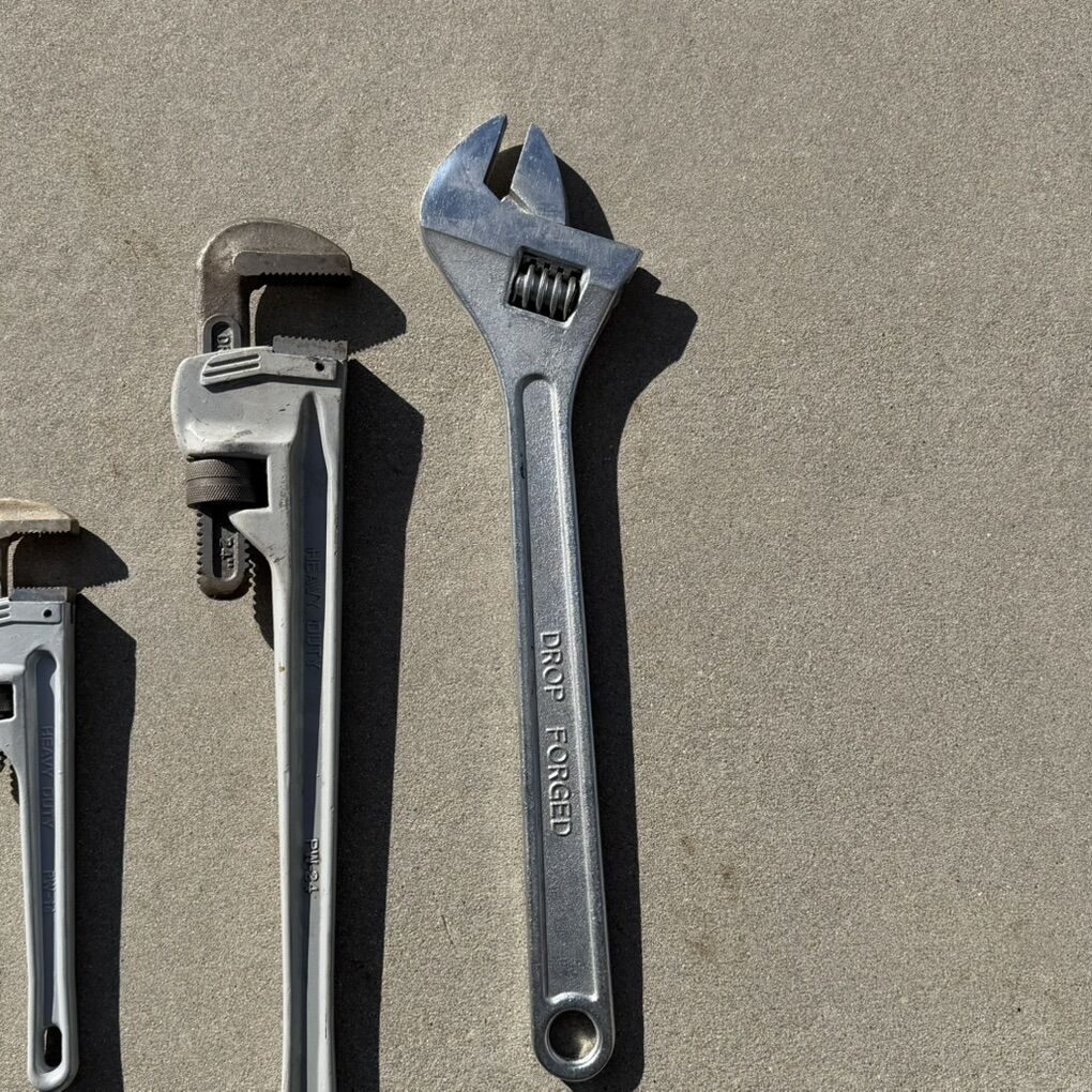 VenmoAll four wrenches for 80 bucks. Price is firm. All pipe wrenches are aluminum. Adjustable wrench is a 24”. First come, first serve served will not hold.