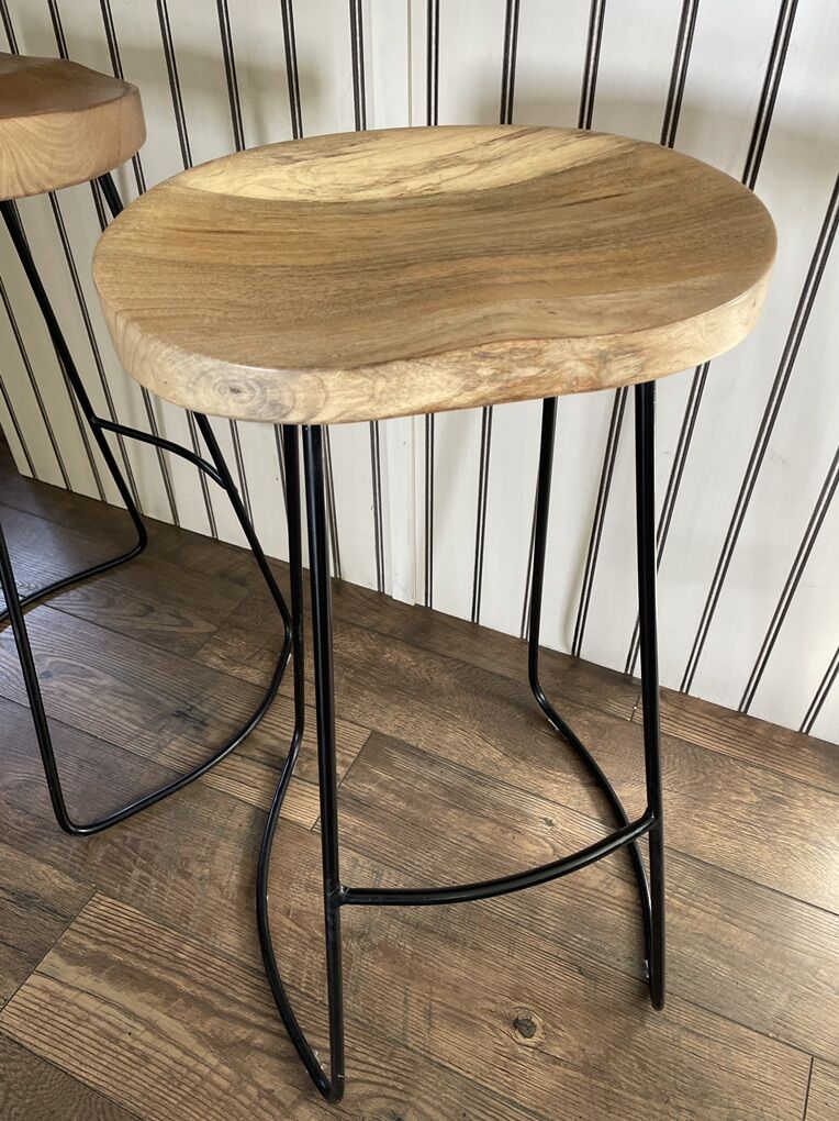 VenmoWood saddle seat bar stools with metal bases 29” tall