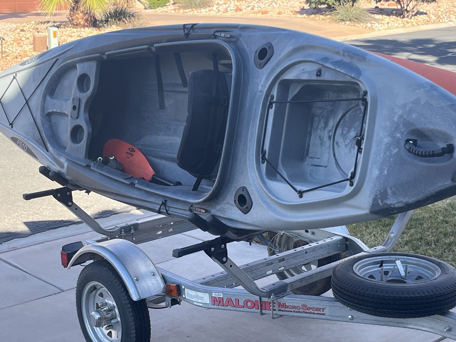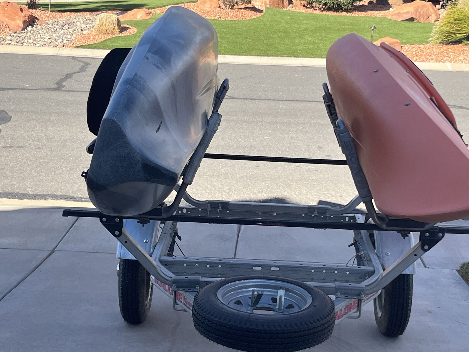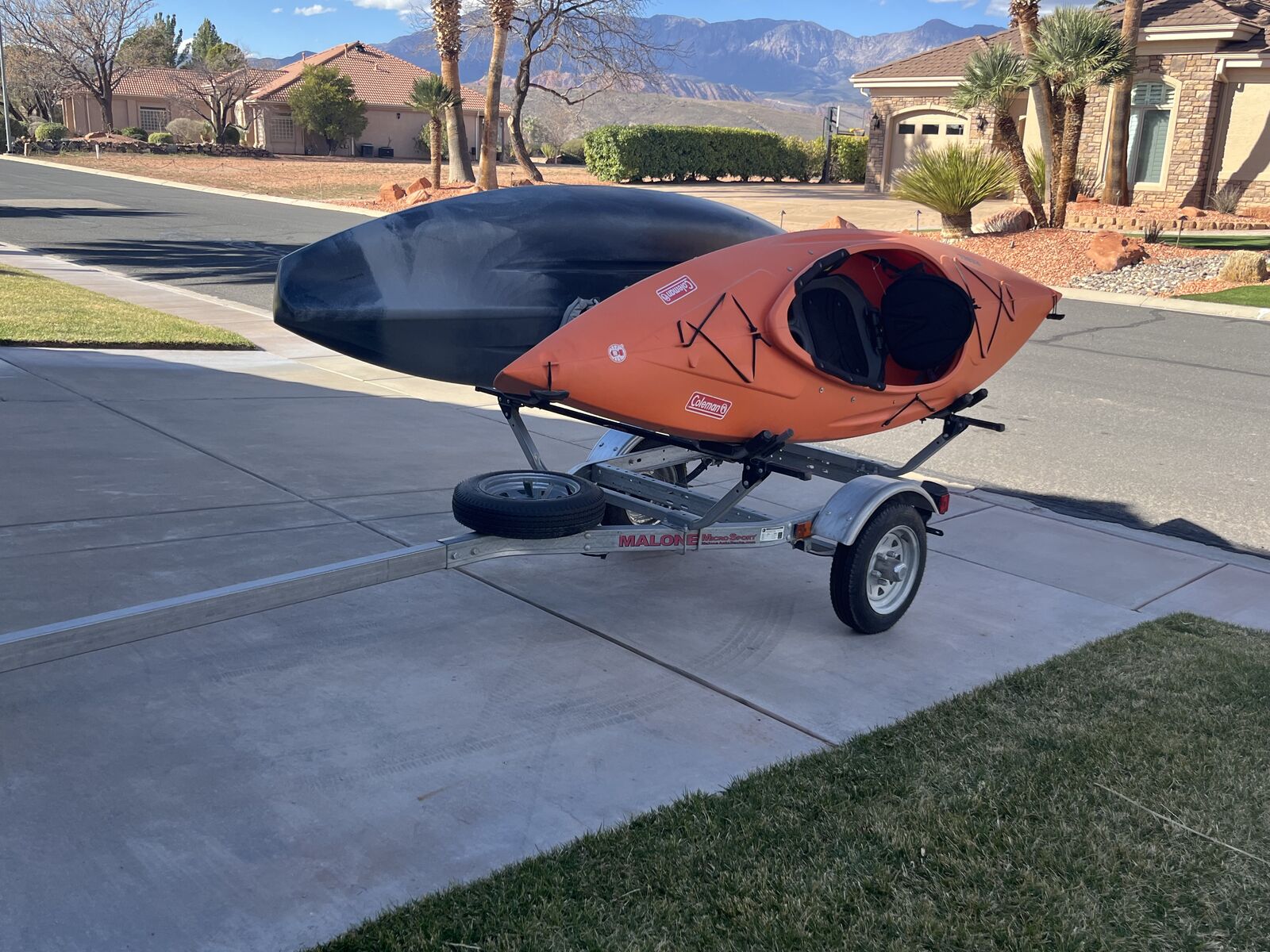 Malone aluminum trailer, Acend fishing kayak and Coleman kayak