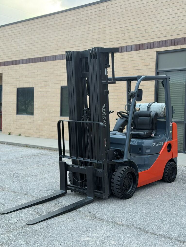 MAX LIFTING CAPACITY: 5000LB MAX LIFTING HEIGHT: 238” LOWERED HEIGHT: 83” MAST TYPE: 4 STAGE MAST (QUAD) CARRIAGE INCLUDES SIDE SHIFT ATTACHMENT RUNS ON: PROPANE ENGINE: EASY START 4 CYLINDER ENGINE TIRES: SOLID TRACTION DEEP LUG TIRES EXCELLENT WORKING CONDITION HYDRAULICS FUNCTION PROPERLY NO LEAKS THIS UNIT IS SERVICED AND READY TO WORK!