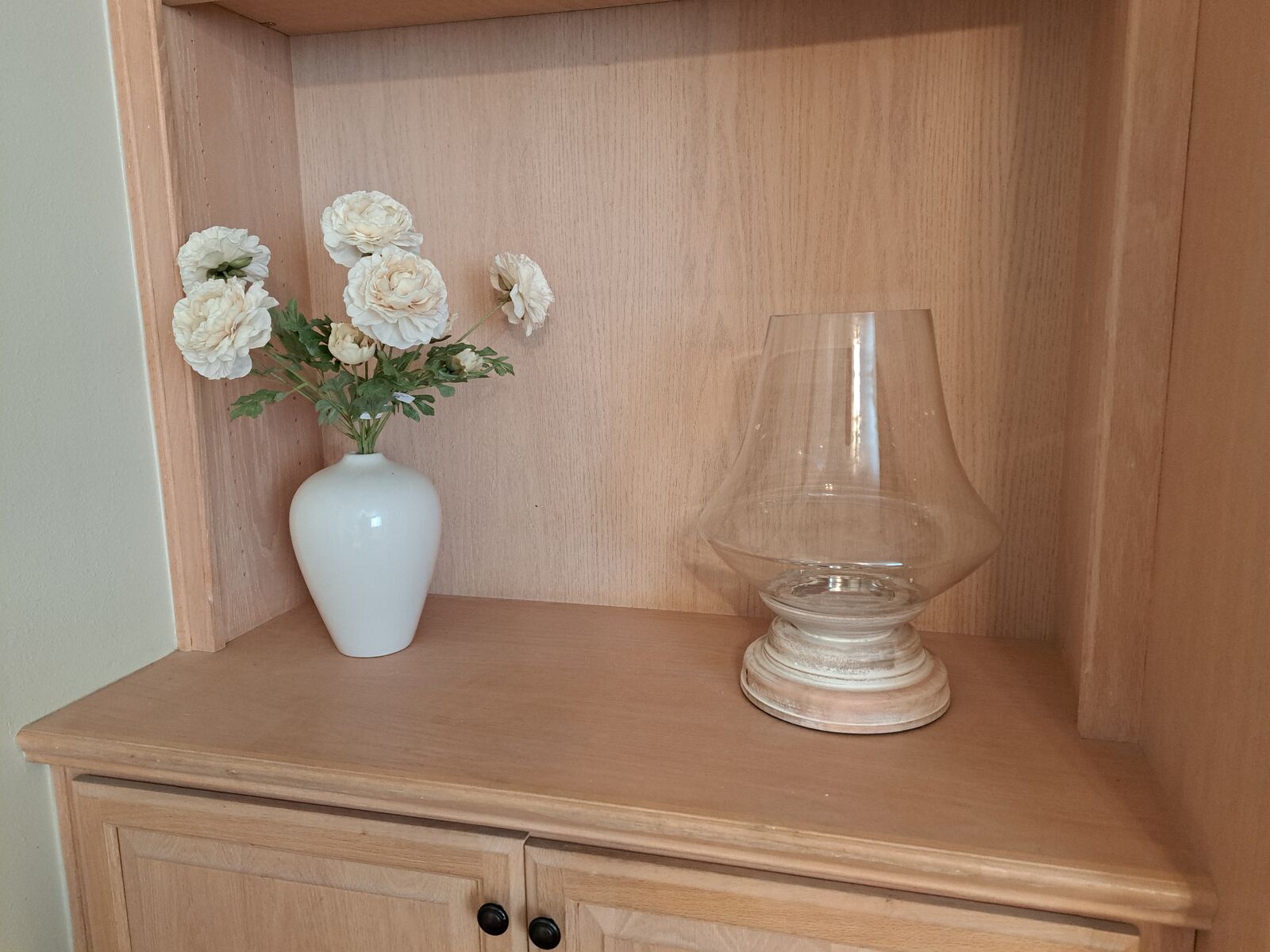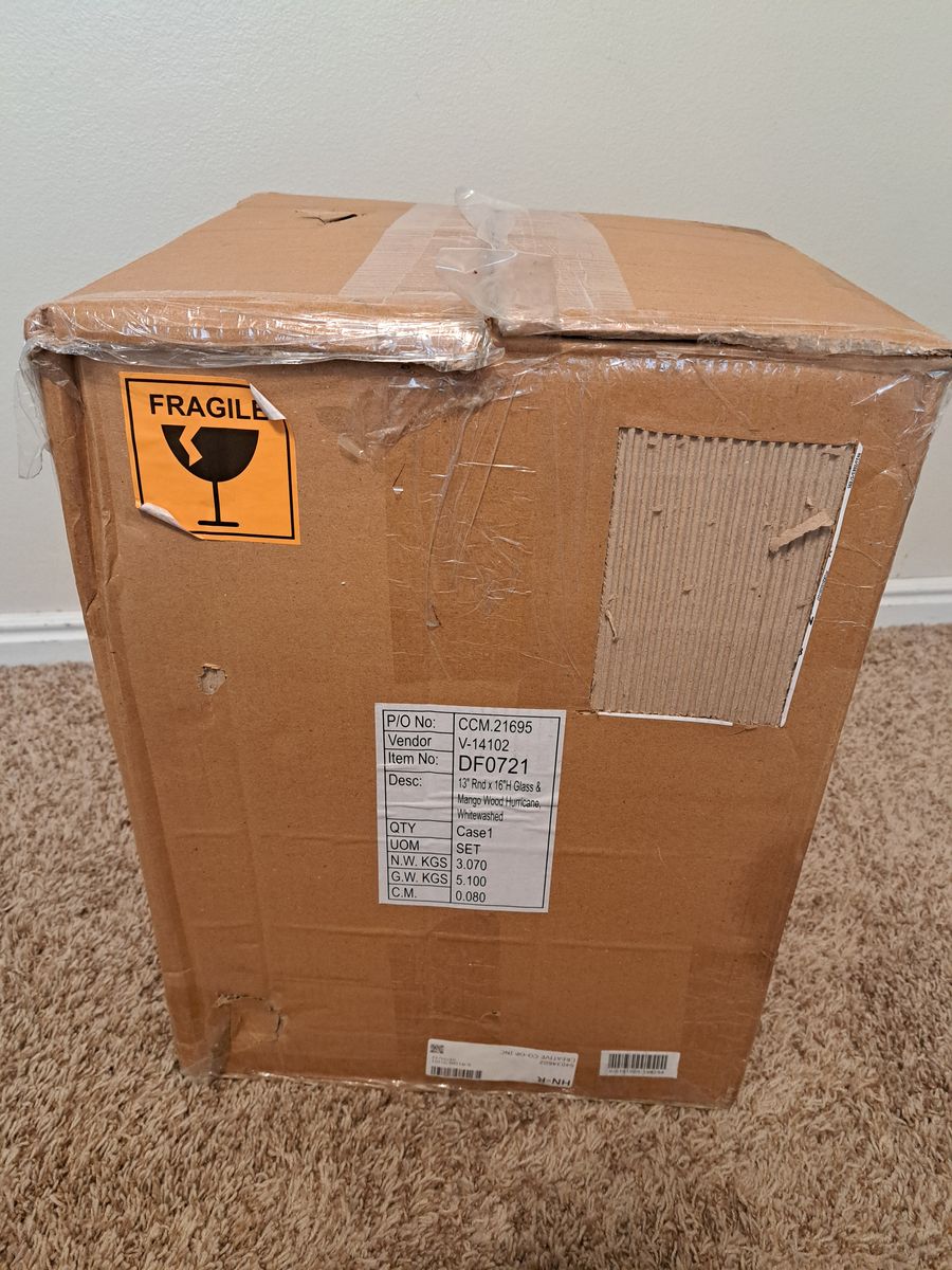 Set of 2 Creative Co-Op Large Whitewashed Mango Wood & Clear Handblown Glass Hurricanes.