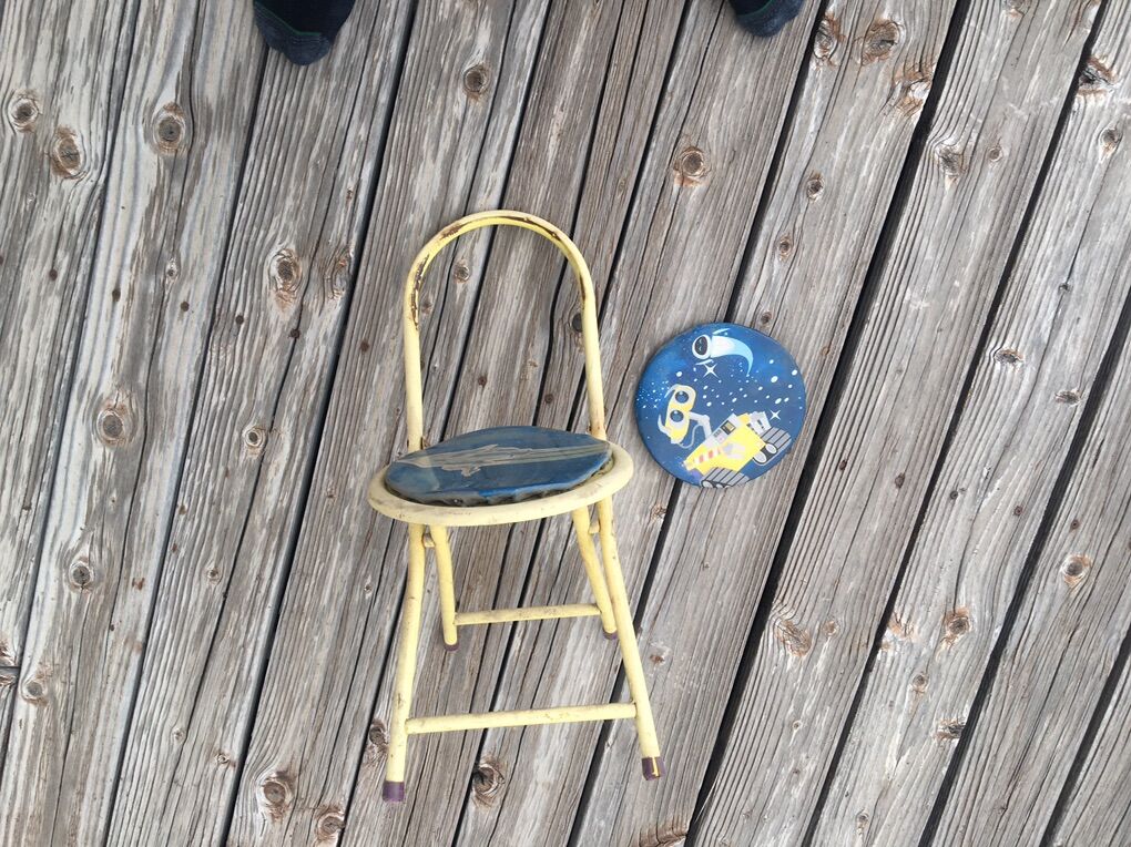 Child’s folding chair This could be really cute in the hands of someone creative and crafty I took a picture of my foot for a size reference