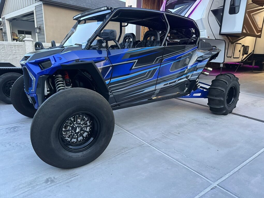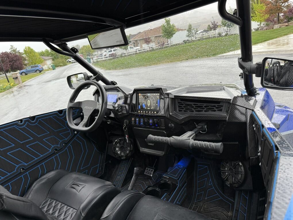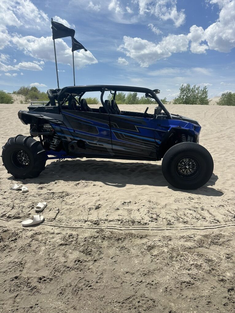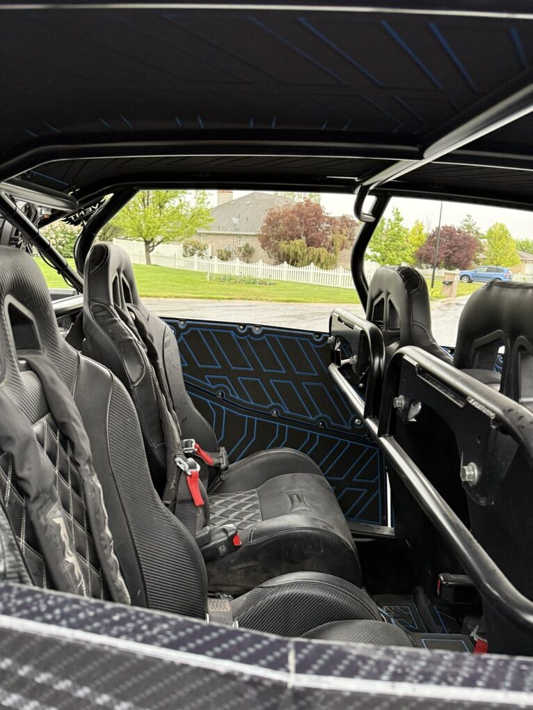 Upgrade List: Kicker Speakers / Sound system Sand Wheels & Tires: Sand Craft 32” tire with Packard Wheel Trail Wheels & Tires: Caliber Racing Wheel with 32 Tire, custom powder coating on wheels Carbon Fiber accents (hood and interior) Brand new ECD wrap Street Legal Kit Light Bar Rear Storage box Fire extinguisher -2 Vent Cage Rock Lighting Racing seats DKZ Interior foam kit Moto Armor Doors EVO Exhaust with electronic baffle Tuner Sparco Steering wheel 5150 lighted whips Front and rear camera SMB Particle Separator Worx Turbo upgrade & tuner - Tuned for 91 & 110 SS Skid Plate