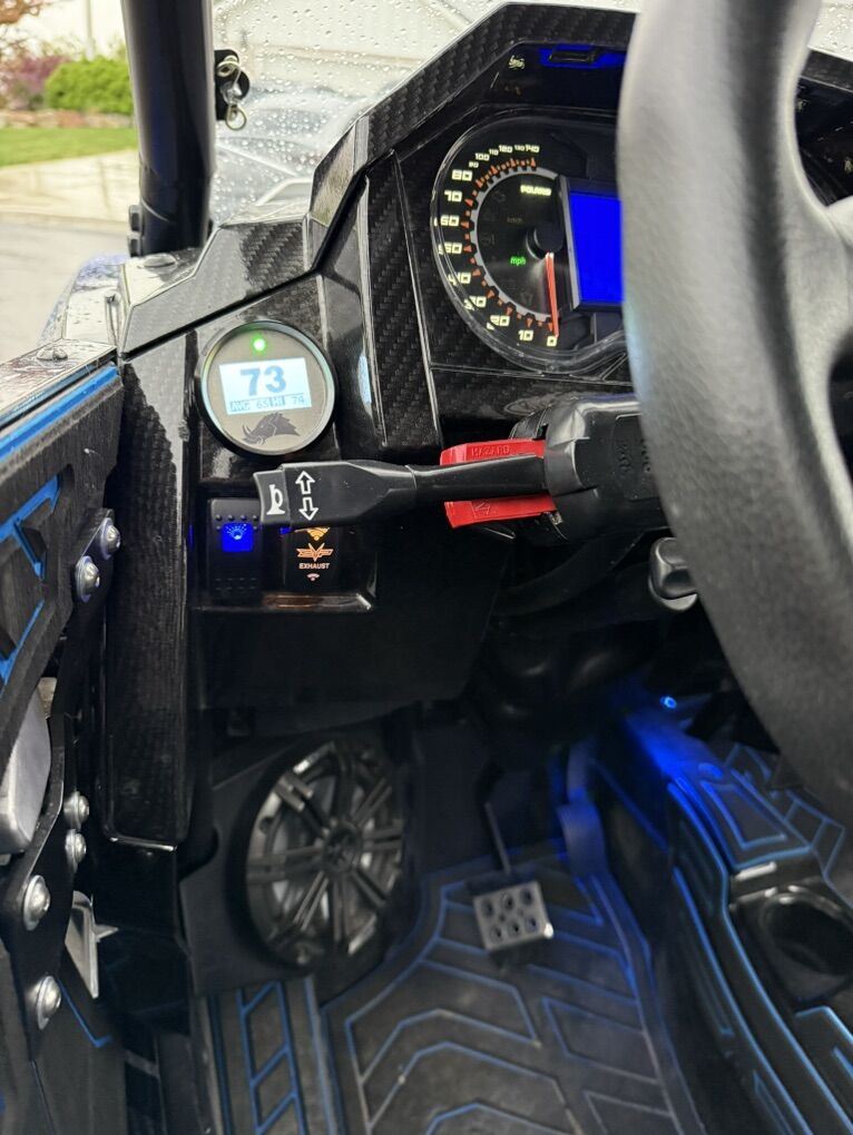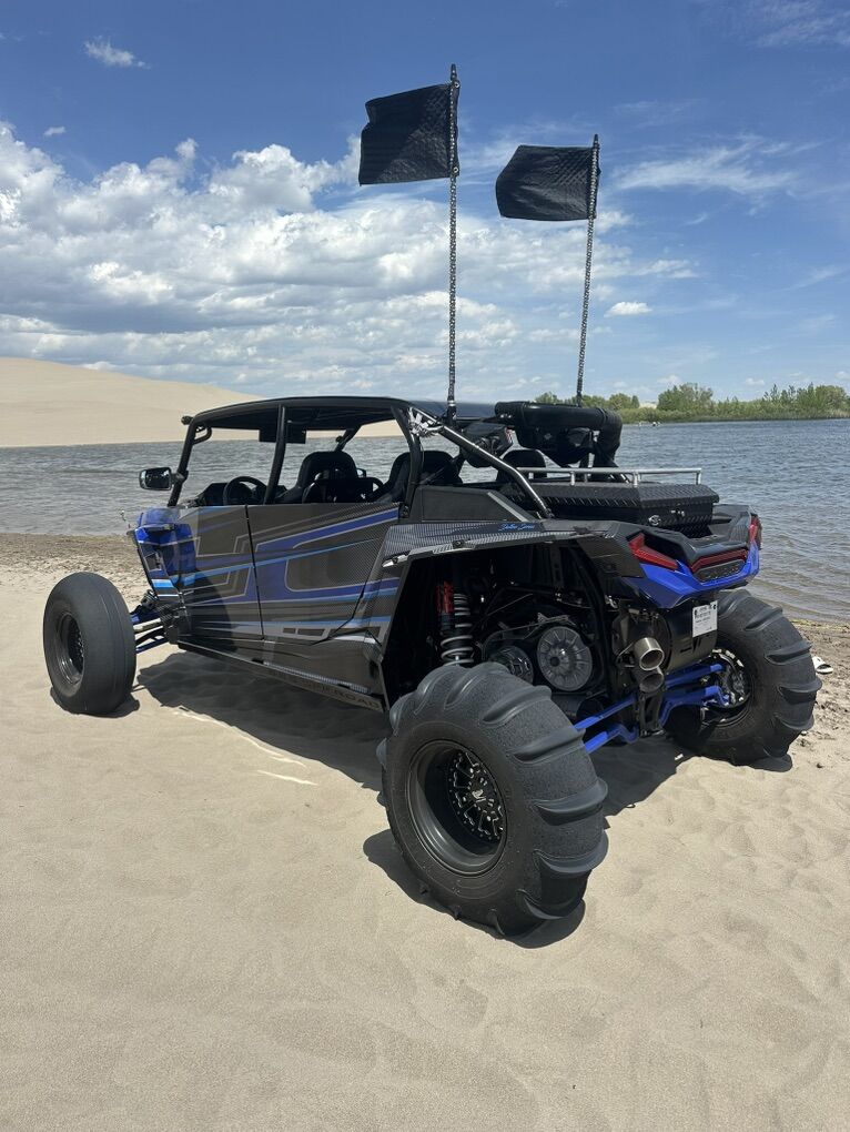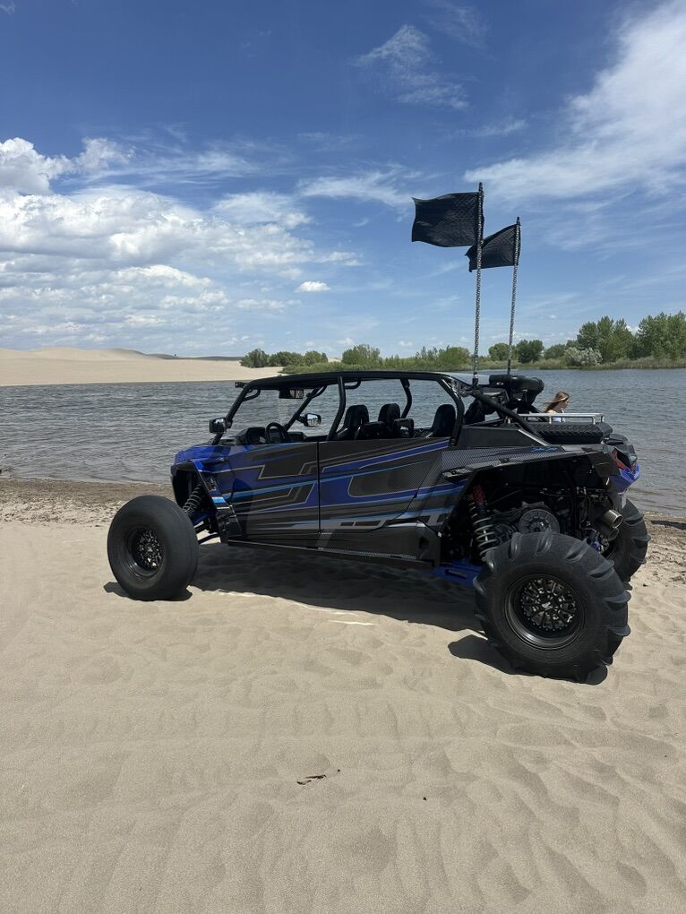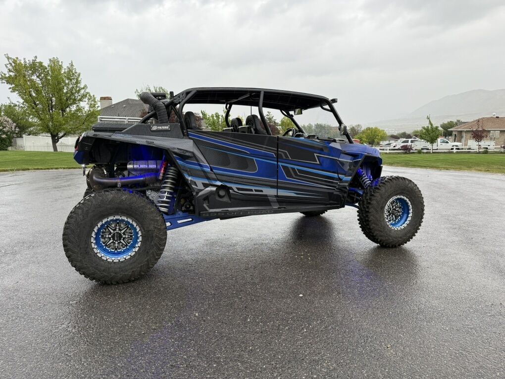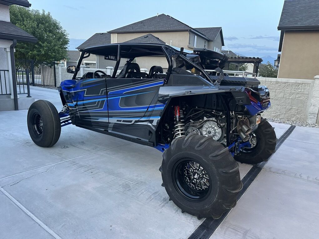 Upgrade List: Kicker Speakers / Sound system Sand Wheels & Tires: Sand Craft 32” tire with Packard Wheel Trail Wheels & Tires: Caliber Racing Wheel with 32 Tire, custom powder coating on wheels Carbon Fiber accents (hood and interior) Brand new ECD wrap Street Legal Kit Light Bar Rear Storage box Fire extinguisher -2 Vent Cage Rock Lighting Racing seats DKZ Interior foam kit Moto Armor Doors EVO Exhaust with electronic baffle Tuner Sparco Steering wheel 5150 lighted whips Front and rear camera SMB Particle Separator Worx Turbo upgrade & tuner - Tuned for 91 & 110 SS Skid Plate