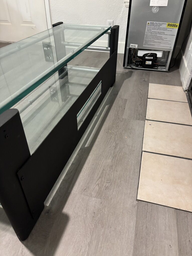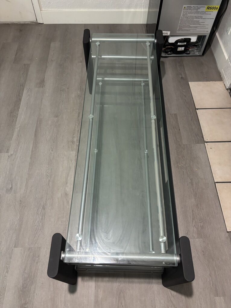 VenmoTable is made of metal and tempered glass. It is in excellent condition with no visible damage 21x58 inches Table is heavy please bring help to move it if you’re buying it.