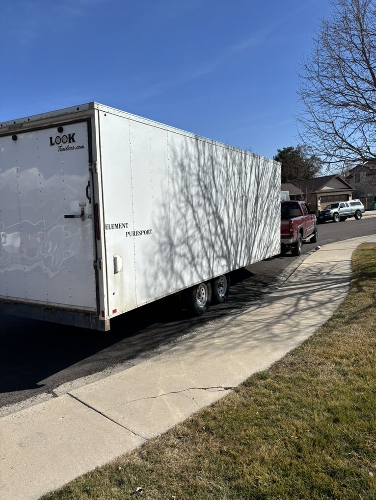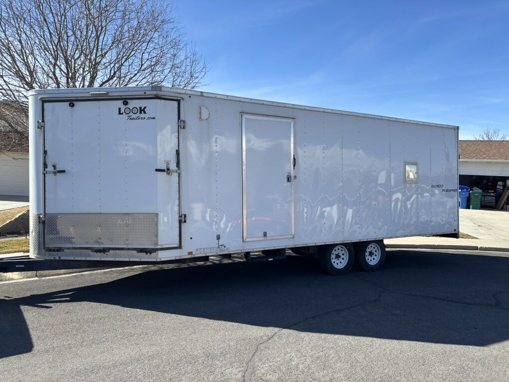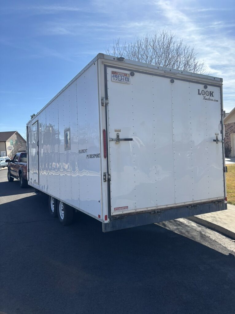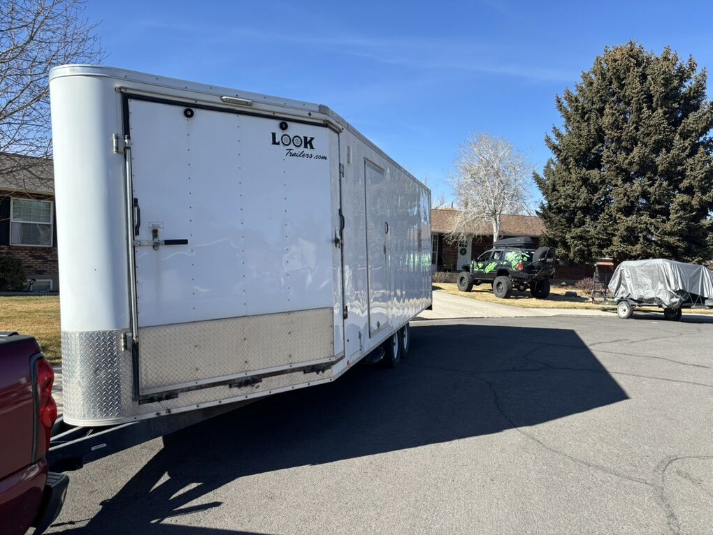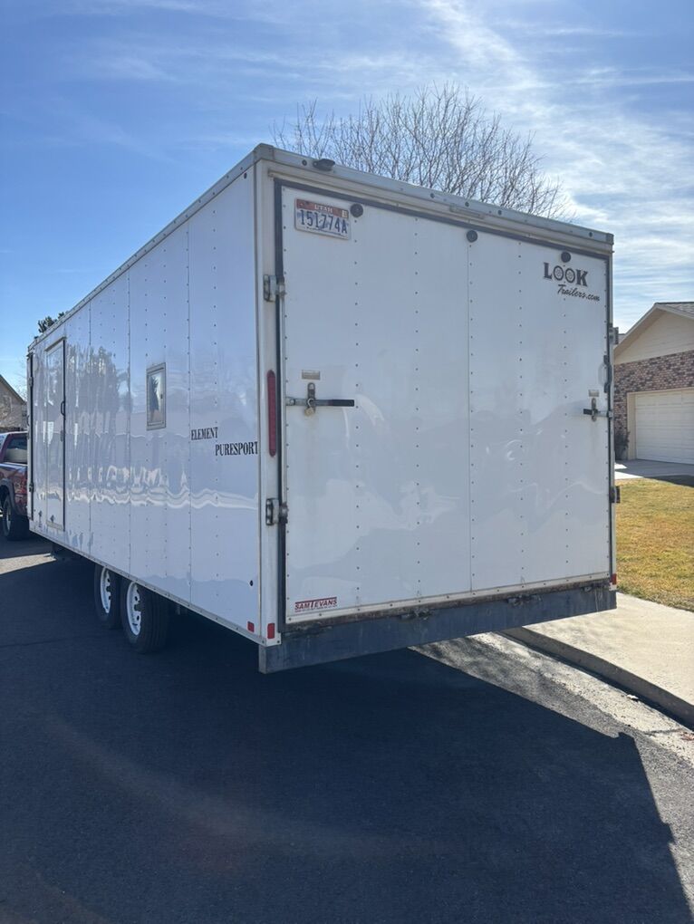 27 foot look trailer. Has spring assist doors, extra height, beaver tail, ski glides, epoxy floors, helmet rack, cabinet in front and on side, container for oil, tie down rack, tool box on ground in front, and coat rack. Asking$9,500. No trades. Title in hand. Reason for sale getting out of the snowmobile sport.