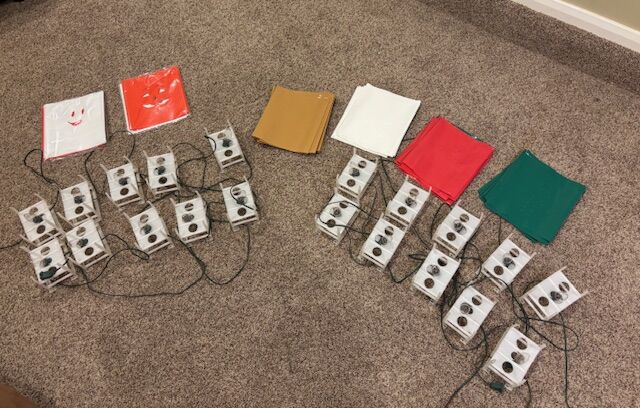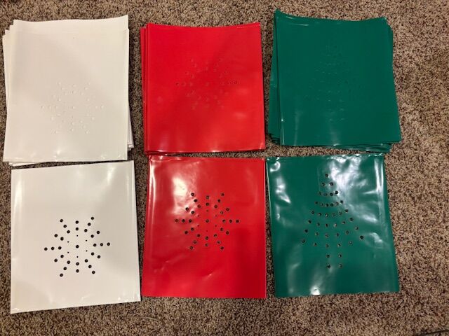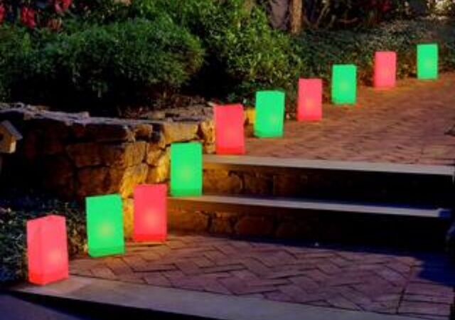 VenmoTwo sets of electric luminary frames with lights. Each string is 25' long with 10 luminary frames per set. Also included are weather-proof colored bags for Christmas, Halloween, or traditional paper sack color covers.