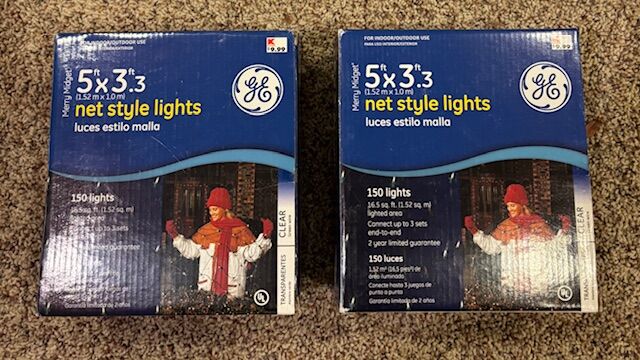 VenmoHoliday Lights--Includes 4 boxes of 150 light trunk mesh lights, 5 boxes of 50 light window icicles (2 sets in each box), 3 boxes of 18' crystalized rope lights, and 2 boxes of 5'x3' net style lights. Only used once.