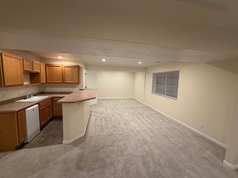 Basement has a bedroom, kitchenette, large living room, and plenty of storage.