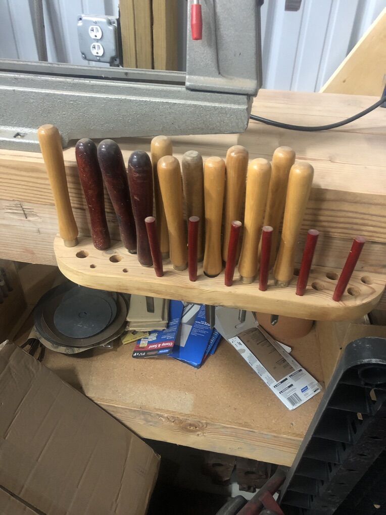 I have a great wood lathe with all of the tools and sand strips that I just don’t have enough use for. The length is about 32” for material and 36” total frame length.