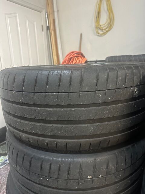 Venmo19" front and 20" rear Trident wheels and almost new Michelin Run-flat tires. All are mounted with TPSM's installed, balanced and ready to put on your car. Tires only have 2or 3K miles on them. I just want to clean out my garage.( I put on Continental extremes and a 3K $ set of chrome wheels.) I also acquired 2 more sets of Michelin runflats mounted on OEM C8 wheels, $600 each set.
