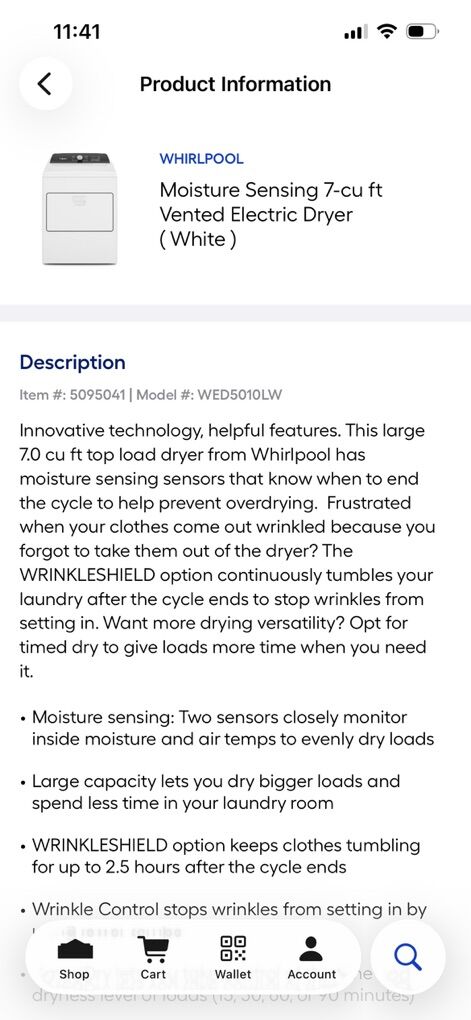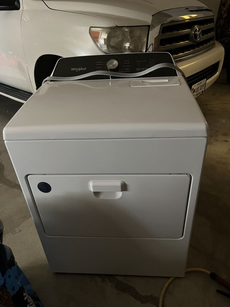 ApplePayOne year old Whirlpool Dryer. Purchased December 2024. Only getting rid of it because we converted to a gas dryer. Please call or text. $375/offer!