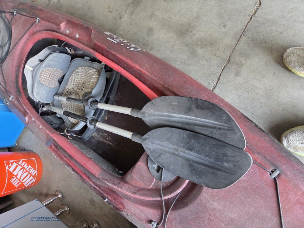 old town kayak. its a little dusty and it could use a new seat but is in great condition otherwise. comes with snap together paddles. 250 obo