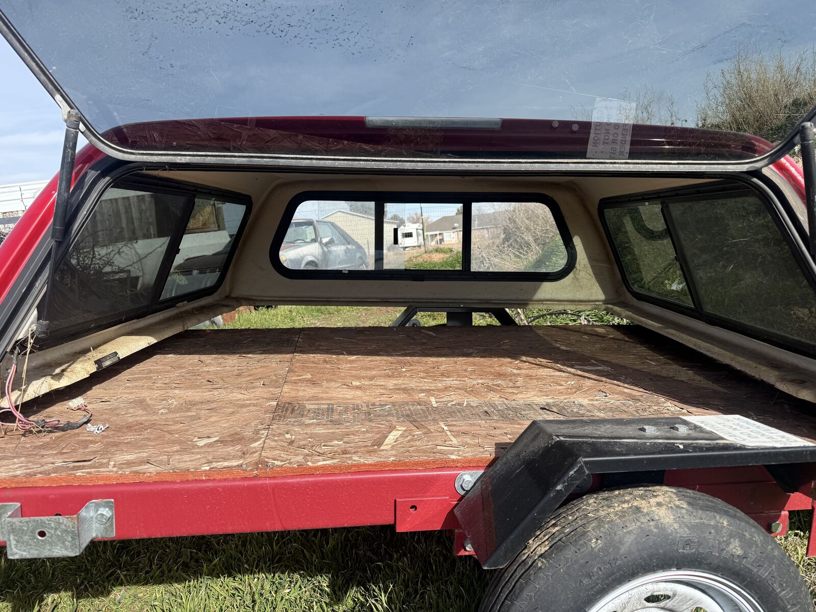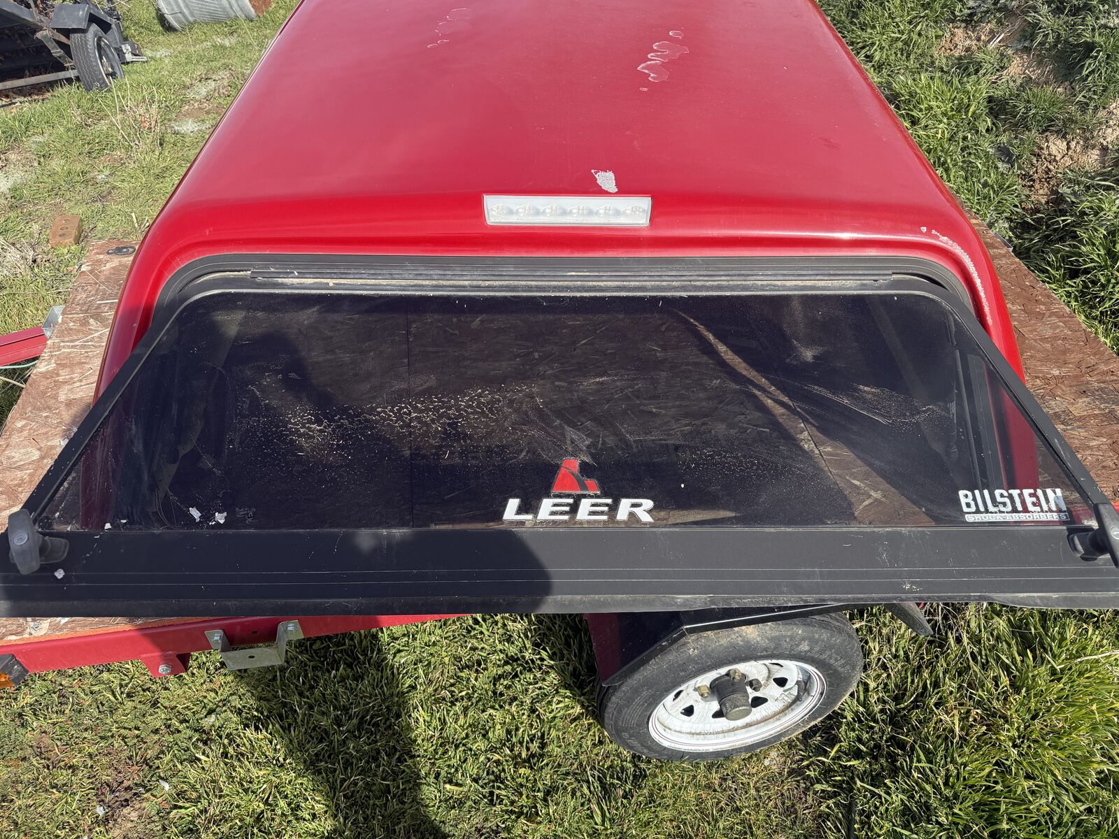 Matches the Factory Frontier Red in 2011, unsure what years it was used. All glass intact, Struts hold strong, wiring is attached, the exterior light was functional, it needs a new interior light hook up to the wiring if wanted.