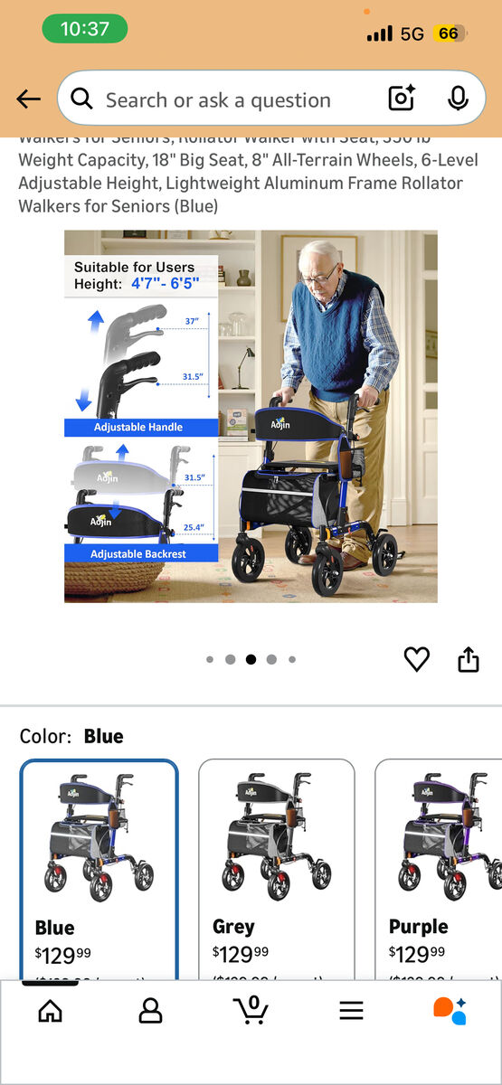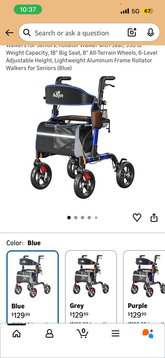 Top highlights Premium Heavy-Duty & Lightweight DesignAojin foldable rollator walkers for seniors feature a reinforced aluminum alloy frame, delivering exceptional strength and a 350 lb weight capacity while remaining lightweight for easy maneuverability. Its foldable design in seconds allows for compact storage and transport, making it ideal for daily use. 6-Level Adjustable Height & Ergonomic ComfortEngineered with 6-position adjustable handles and backrest, this adult rollator walker with seat accommodates users from 4'7 to 6'5. The breathable mesh backrest and padded 18 seat provide all-day comfort, for seniors seeking support and relaxation during outings. Enhanced Safety with 3-Mode Brake & All-Terrain WheelsEquipped with an intuitive 3-mode brake (Free, Slow, Lock) and 8 all-terrain wheels, this rolling walker ensures safe and stable movement on various surfaces. The ergonomic thumb rest and non-slip 15° angled handle reduce wrist strain by 65%. The puncture-proof tires and slip-resistant tread offer confidence on wet or uneven terrain, while reflective strips enhance visibility. Conquer Any Terrain with ConfidenceOur 4 wheel walkers for seniors features 8-inch puncture-proof quiet-roll tires for smooth rides on any terrain The upgraded textured tread pattern delivers exceptional slip resistance, ensuring stable movement even on wet surfaces, while 360° swivel wheels ensure easy steering. Sturdy Frame & Senior-Friendly FeaturesDesigned with a durable aluminum frame and non-slip handles, Aojin’s senior walker reduces wrist strain by 65% and provides reliable support. Its robust construction and user-friendly features make it a top choice for adult walkers with seats, ensuring safety and comfort. Trusted ReliabilityWith 20+ years of expertise, we control every step from R&D to manufacturing. Each Aojin walker passes 37 quality checks. We provide lifetime after-sales support, a hassle-free return policy, and a professional customer service team that resolves any issue within 24 hours, ensuring a worry-free experience.