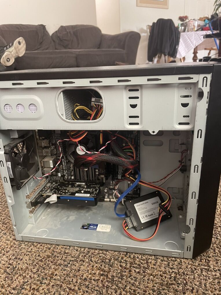 Budget gaming pc works great has 8gb ram and 400w power supply and a gt730 1gb graphics card idk the cpu tho I think it’s amd cash only or trade for Xbox one comes with power cable too