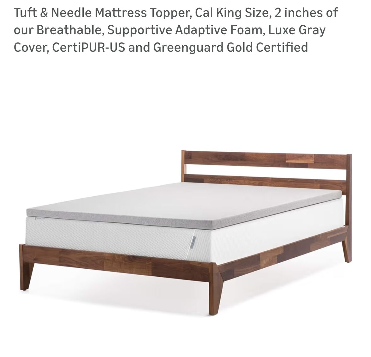 Tuft & Needle Cal King Mattress Topper, 2 inches of Breathable, Supportive Adaptive Foam, Luxe Gray Zippered Cover, CertiPUR-US and Greenguard Gold Certified. Renews an old mattress. Paid $240. Like brand new. No spots, tears, or signs of use. Renews an old mattress. Can cut to a smaller size. Non smoker.