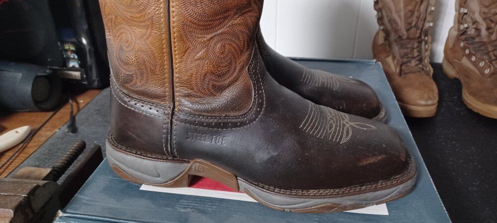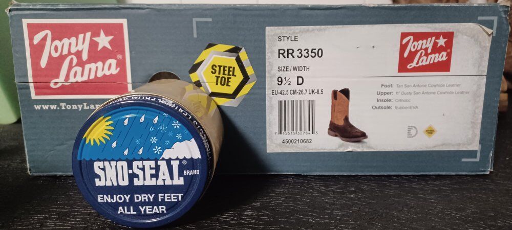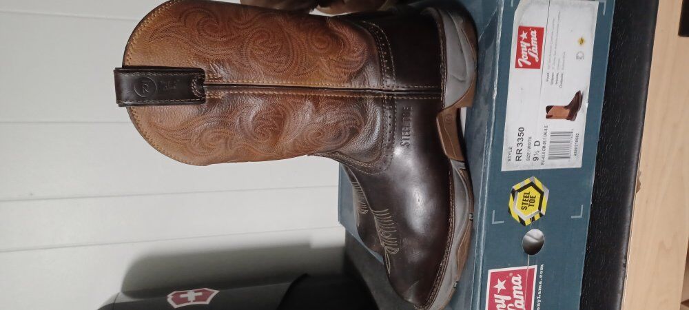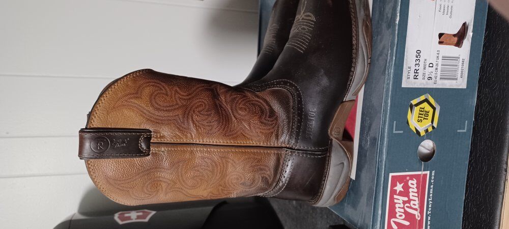 ZelleTony Lama Junction 11" Steel Toe Work Boots. Waterproofed by Sno-Seal. Comes with Original Box. Does not come with sno seal in the picture, was only in the picture to show I've waterproof it with sno seal. Has not been damaged via steel toe only small scratches on the leather rubbing up against wooden pallets no lacerations no punctures of any kind. Please see pictures for further details please feel free to reach out to me for more pictures if you wish. I'm asking for $100.00 Or Make Offer. Remember Never Hurts To Ask At All. Especially on all my listings. Have pictures from Tony Lama Website Describing the boots at hand. Size is 9.5D Mens. Thank you for your time and looking and interest. Payments accepted Cash, PayPal, Cash App, Venmo, Facebook Pay